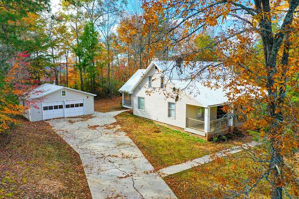 Escape to the quiet beauty of country living but yet still close to town. This completely updated modern farmhouse sits on over 6 private acres surrounded by nature. Move-in ready and full of charm, this home features new stainless-steel appliances, new heat pump, new water heater, luxury vinyl plank flooring, and updated lighting to name a few of the many improvements. The spacious primary suite offers a walk-in closet, double vanities, and beautiful finishes on the main floor. Upstairs provides 2 bedrooms and a full bathroom. The extra living room features a custom fireplace that can be wood burning or propane. This home does not lack storage with a walk-in pantry, utility and laundry room and extra storage in the floored attic areas. Enjoy quiet mornings and relaxing evenings on the covered porches. With room for gardening, horses, or even a second home site, there's space to make it your own. With an unattached garage with workshop, extra storage shed, and fenced backyard with cozy spots for evening fires, this property has everything you need to live the peaceful country life you've been dreaming of.