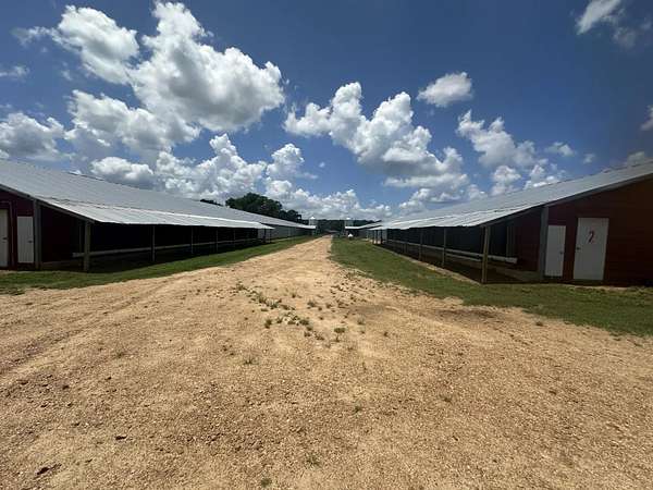 KaiSky Broiler Farm is a seven house broiler farm located in Copiah County, Mississippi near the town of Wesson. This farm grows for Wayne Sanderson Hazelhurst Complex on a 9lb bird. Situated on 53+/- Acres and has a two bedroom and two bathroom barndominium.