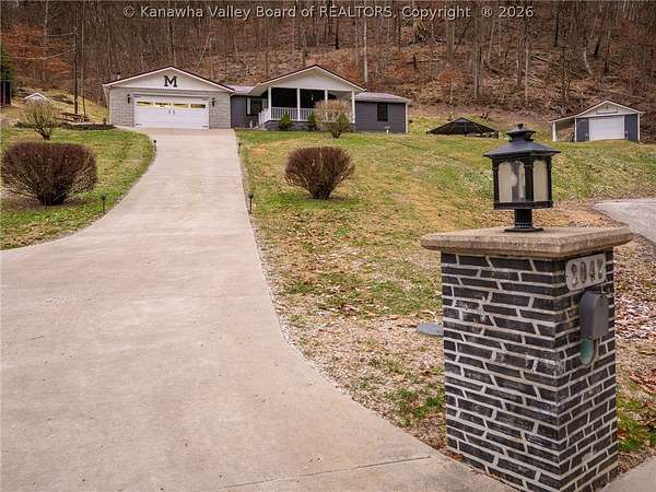 1.4 miles from Charleston on Sissonville Dr. Turn left onto Scraggs Dr by Skeenies Hot Dogs. Home is on the left .2 miles.