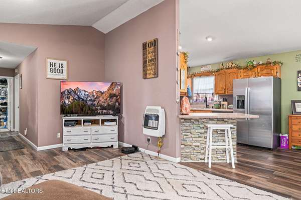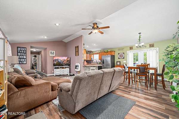 Tucked away on 2.5 beautiful acres, this 4-bedroom, 2-bath home offers the best of both worlds-serene country living with quick access to shopping and amenities. Built in 2005 and offering over 2,000 sq.ft. of living space, this home sits privately off the road with a long driveway, open yard, and tree-lined backdrop for added seclusion. The covered front porch welcomes you into a spacious living area with vaulted ceilings and warm, inviting finishes. The kitchen features ample cabinet space and a cozy breakfast bar that opens to the dining area-perfect for everyday family meals or weekend gatherings. French doors lead to a back deck overlooking peaceful countryside views, ideal for morning coffee or stargazing at night. The split-bedroom layout provides privacy for the primary suite, complete with a large walk-in closet and attached bath. A versatile bonus room offers space for a home office, hobby area, or guest suite. With updated flooring throughout much of the home and a functional flow, it's easy to picture yourself settling right in. Outside, you'll find room to garden, play, or even start your own mini-farm. An old barn sits on the property-ready for restoration or creative repurposing. Whether you're looking for a little extra elbow room or a quiet place to put down roots, this property captures that ''out in the country'' feel without giving up convenience.