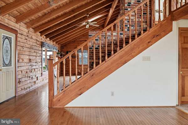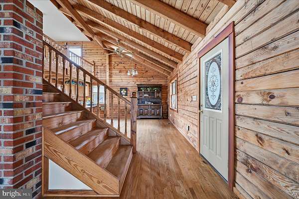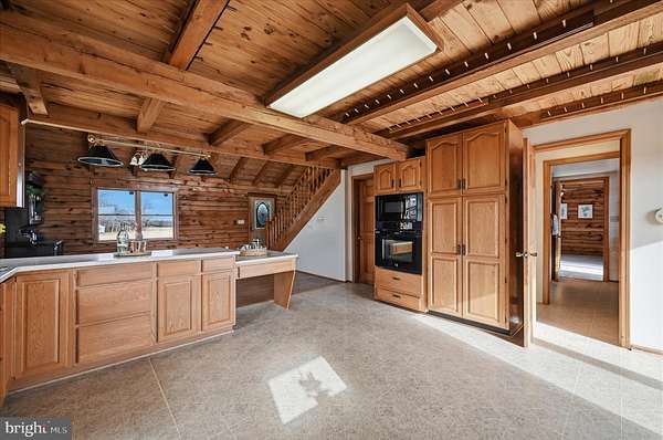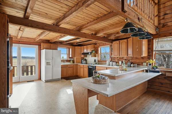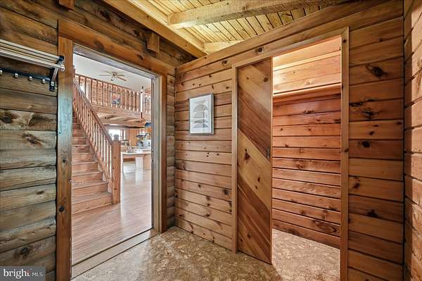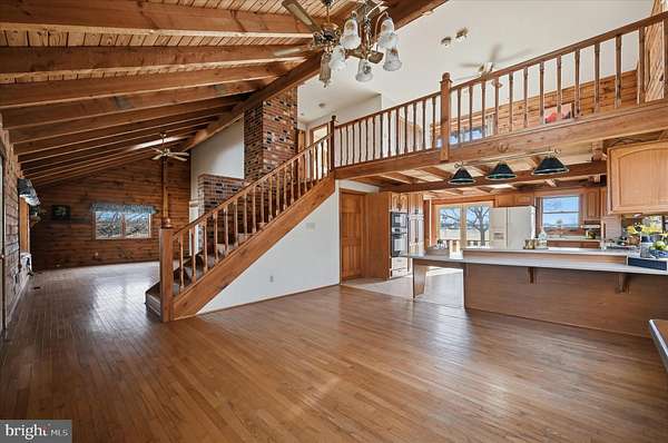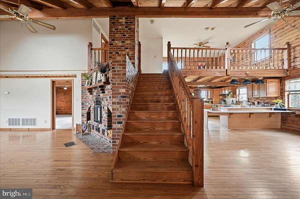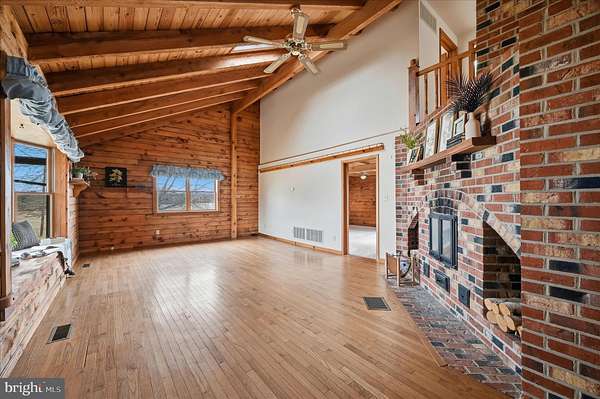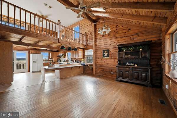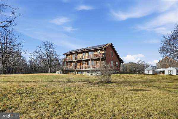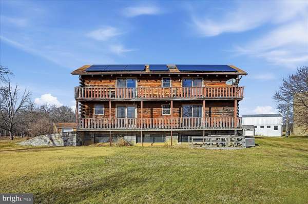 Tucked away at the end of a long, private gravel drive, this remarkable 17.25-acre farm offers peace, privacy, and endless possibilities. As you pass through a wooded entrance, the property opens to a stunning log cabin homestead surrounded by open land, mature trees, and an impressive collection of usable outbuildings-perfect for farming, hobbies, storage, or future expansion. At the heart of the property is a beautifully crafted energy-efficient log home offering approximately 2,600 sq ft of finished living space above grade, complemented by an unfinished 1,394 sq ft partial daylight basement with interior access from the kitchen and an exterior walk-up to the backyard. Solar panels with a power bank help heat and cool the home, keeping utility costs low, while a re-circulating Finnish-style wood stove insert adds warmth, charm, and efficiency. The main level welcomes you into a separate foyer/mudroom with coat closet, leading to an open-concept living area featuring log interior walls, cathedral wood ceilings, skylights, and a spacious family room with bay window views of the porch. The brick corner fireplace with wood stove insert anchors the space, creating a cozy yet expansive gathering area. Stairs lead to the upper level, seamlessly connecting the living and dining spaces. The large country kitchen is designed for both function and entertaining, offering abundant counter space, real wood soft-close cabinetry, double sink overlooking the yard, cooktop, built-in oven and microwave, dishwasher, and a breakfast bar that opens to the dining room. A door from the kitchen leads to the lower balcony, perfect for enjoying peaceful views of the land. The main-level primary bedroom features a beamed ceiling, carpeted flooring, and sliding glass doors to the lower balcony. The attached bath includes a walk-in shower, while a nearby laundry room adds convenience. Upstairs, a versatile overlook-style bonus room with sliding glass doors to the upper balcony offers endless flexibility, ideal for a home office, recreation room, guest space, or additional bedroom. A full bath with tub/shower combo and skylight serves the upper level, along with a spacious second bedroom measuring approximately, also featuring balcony access. This property was once part of a larger dairy farm and still showcases its agricultural roots with an exceptional array of outbuildings. Highlights include: A large barn with concrete-floored milking area, upper-level hay loft, and attached lean-to run-in shed A separate dairy parlor with concrete floors and block walls A large open pole barn with concrete yard area A wood stove-heated workshop with floored upper storage and hay door A roofless silo ready for creative conversion-tiny home, storage, or restored silo Multiple run-in sheds, including a former chicken coop A modern two-car detached garage with automatic openers, extra storage, and a lockable side door An additional older one-car wooden garage with concrete floor The property is serviced by private well and septic, eliminating water and sewer bills, and benefits from low electric costs due to the solar system and efficient heating design. Whether you're looking to farm, homestead, create a multi-use retreat, or establish a legacy property, this unique offering delivers space, versatility, and timeless charm.