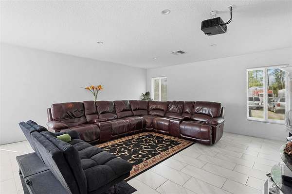 Welcome to this stunning estate in the highly sought-after Deltona Ranchettes, offering the perfect blend of space, style, and functionality! This sprawling 4-bedroom, 4-bathroom home boasts over 4,300 sq. ft. of living space and is ideal for those seeking luxury and comfort on a grand scale. Built with quality and thoughtfully designed, the home features multiple living areas, a finished garage (602 sq. ft.), 395 sq. ft. of patio space, and an open finished porch, totaling over 5,300 sq. ft. under roof.