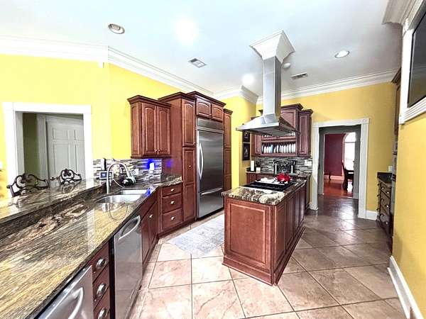Mediterranean / European-inspired home located at 2048 Wooded Drive, Grenada, MS. This stunning two-story home offers approximately 4,000 square feet of beautifully designed living space and sits on 4.4 private acres. Featuring 4-5 bedrooms and 3.5 baths, this home blends elegance with comfort. Interior highlights include hardwood and ceramic floors throughout, with the primary suite showcasing bamboo flooring for a warm, natural touch. The remodeled kitchen is a showstopper with new cabinetry and granite countertops, offering a spacious layout with a breakfast area perfect for casual dining. Formal and informal living spaces include a great room, study/small living room, and a separate dining room, making this home ideal for both entertaining and everyday living. An extra wet bar/game room adds to the entertainment appeal, while outdoors you'll find a beautiful pool and an oversized pool house, creating your own private retreat. With its European-inspired architecture, arched entry, and private wooded setting, this property offers luxury, space, and versatility rarely found in one package.