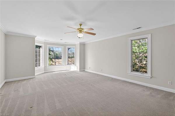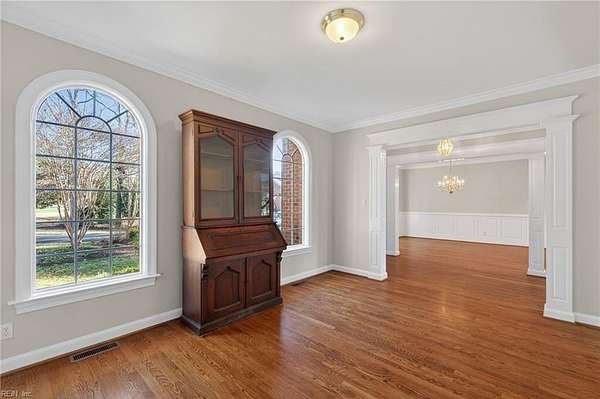 You are going to love this brick, waterfront, Southern Living home design built by Sasser construction in a cul-de-sac in the award winning community of Gatling Pointe. The formal living and dining rooms are on either side of the foyer and have elegant trim and beautiful hardwood floors. The family room is open to the kitchen and has soaring ceilings with lot of glass looking out to the private waterfront back yard. The kitchen has new appliances, plenty of cabinet space and lots of granite counter space. The first floor also has bedroom four and a full bath. This large room works great for an office, guest room, or in law suite. The primary bedroom features a private sitting area or office, large elegant attached bath and enormous closet. Two other generous bedrooms share an adjoining full bath. There is a walk up attic for storage, large deck for outdoor entertaining, and year round breath taking sunsets over Town Farm Creek. The neighborhood yacht club has pool, tennis & slips