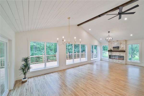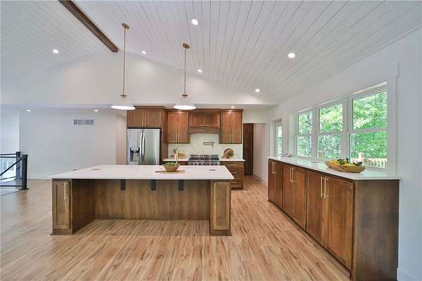 Newly renovated Mississippi River home. Situated on nearly 10 wooded acres with 330 ft of river frontage and unique pond views. This stunning 3,000+ sq ft home offers total privacy, panoramic views, and high-end finishes throughout. Just minutes from Brainerd, enjoy a spacious open-concept layout with vaulted ceilings, expansive windows, a stone fireplace, and a custom kitchen with a one-of-a-kind butler's pantry. The wrap-around deck is perfect for relaxing or entertaining. The luxurious primary suite features a spa-like bath, huge walk-in closet with private laundry, and serene views. The lower level offers a large family room, 2+ bedrooms, full bath, and second laundry. The beautifully finished oversized 3-stall attached garage and bonus detached garage provide ample storage for all your up north toys. The thoughtful design details throughout and natural setting make this home the ultimate riverfront retreat. Rare opportunity--don't miss out on this spectacular property!