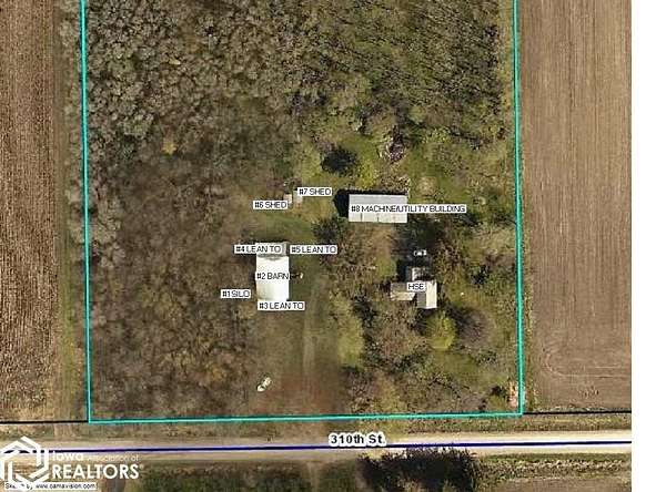 From County road c28/v56 when you intersect the 310th Street intersection, travel west to 2049 310th St. The property is located on the North side of the road.