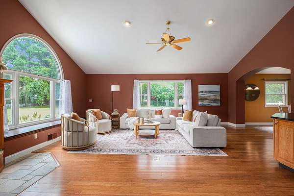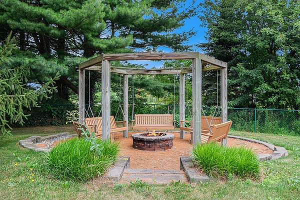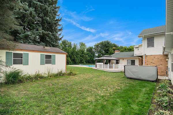 Welcome to your dream home on 5 beautiful acres! This spacious property offers the perfect blend of luxury, function, and outdoor fun. The main level features stunning bamboo flooring throughout and a massive open-concept kitchen with granite countertops, a large center island, and brand-new appliances-perfect for entertaining. A convenient half bath is also located on the main floor. Upstairs, you'll find four (total) generously sized bedrooms, an updated full bathroom with a double vanity, a laundry area, a flex space ideal for a home office or den, and a luxurious primary suite. The primary retreat includes a walk-in closet, private balcony overlooking the backyard, a jetted jacuzzi tub, and a two-person shower. The basement has been waterproofed by EverDry and offers a transferable warranty. It's also plumbed for an additional full bath, offering great potential for future living space. Car enthusiasts and hobbyists will love the attached 4-stall garage, which includes a dedicated 24' x 40' workshop/mancave area with its own 100-amp electrical panel, heating system, and half bath. The backyard is fully fenced and made for entertaining, featuring a hot tub and an inground L-shaped pool with a 20'x30' shallow end and a 20'x26' deep end that reaches 8.5 feet. Relax on the large composite deck under the gazebo or gather around the firepit area with custom bench swings. This property is the full package: space, style, and serene country living!