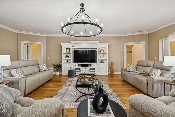 Open House Sunday Feb 15th - 2 pm to 4 pm- Exceptional Country Estate situated on 10 acres with Gated Entrance just minutes off the interstate. "A place you will love coming home to!" Additional 18 Acres possibly available. Private, Spacious and Elegant. Mostly one-level custom brick home with circular driveway, grand entry foyer, refinished hardwoods, neutral colors, formal dining room, main living space adjoins well-appointed kitchen, casual dining and a versatile flex room filed with natural light. The primary suite is located on the main level with remodeled bath including soaking tub, large walk-in closet, sunroom, and private office. There are three additional secondary bedrooms on the main floor. One secondary bedroom could be a "guest suite with kitchenette" Upstairs includes a large media or rec room, a play room, and an optional bedroom with large closet and full bath. Beautiful Outdoors has a wooded area for a deer stand or two, a separate 48 x 48 Metal barn with workshop, a 50-amp service for an RV and lots of peace and quiet.