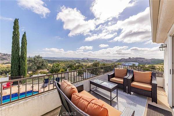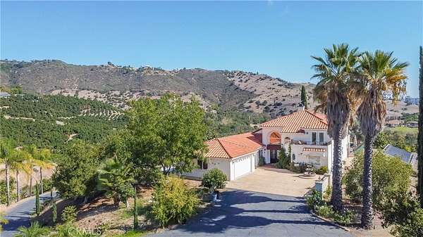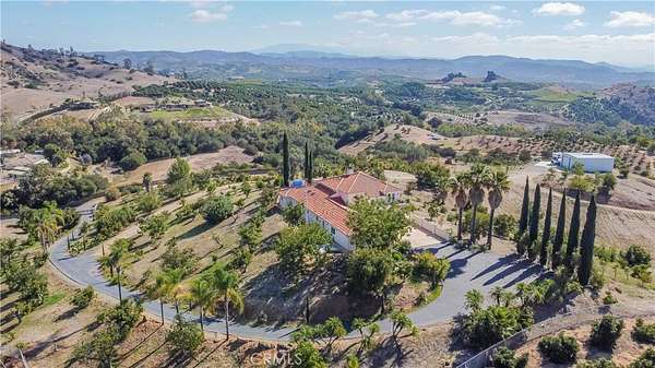 Welcome to 20491 Carancho Road, a private Mediterranean estate perched atop nearly nine acres of gently rolling, meticulously groomed land in the exclusive hills of De Luz. A long, scenic driveway winds through hundreds of producing avocado and lemon trees, leading you to a hilltop residence that captures panoramic 360-degree views of Temecula's most picturesque landscape. This gated property offers unmatched privacy, resort-style amenities, and an atmosphere that feels worlds away--yet remains just minutes from Old Town Temecula, Wine Country, shopping, dining, and top-rated schools.