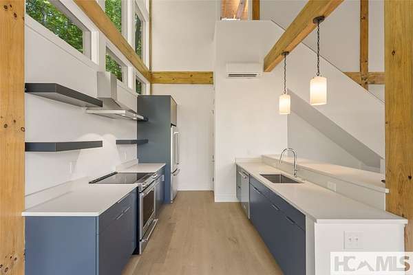 - Beamed Ceilings, Breakfast Bar, Cathedral Ceilings, Ceiling Fans, Double Vanity, High Ceilings, Kitchen Island, Open Floorplan, Pantry, Primary Downstairs, Stone Counters, Vaulted Ceilings