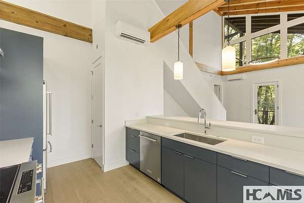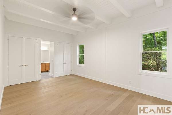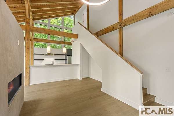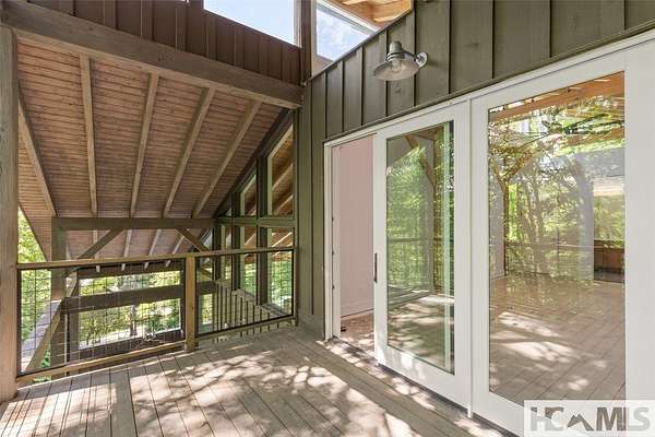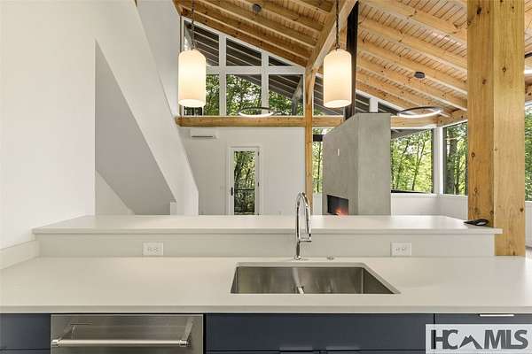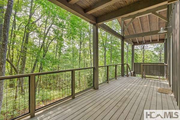 Tucked away on 1.67 private acres in a peaceful, established neighborhood, this thoughtfully designed timber frame home offers a harmonious blend of classic mountain style and clean, contemporary finishes. Located just 15 minutes from Highlands, NC and with easy access to Highway 106, the property provides both tranquility and convenience. Inside, the open-concept floor plan is filled with natural light from expansive windows that frame the lush surroundings. A striking see-through stucco fireplace anchors the main living space, creating a warm and inviting atmosphere. The home features two spacious bedrooms, each with its own en-suite bathroom, offering comfort and privacy for both owners and guests. Outdoor living is a highlight, with two generous covered porches ideal for dining, relaxing, or entertaining. A fire pit and a small creek that winds through the property add to the natural charm, with potential for further landscaping enhancements. A large garage provides ample space for vehicles, storage, or a workshop, perfect for mountain living. Whether you're seeking a serene full-time residence or a weekend escape, this well-crafted home offers a welcoming retreat in the heart of Scaly Mountain