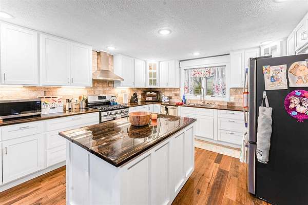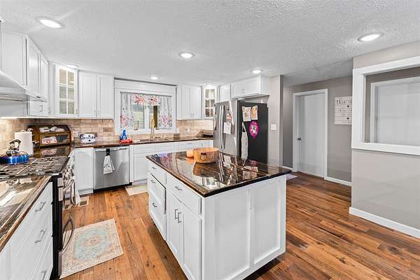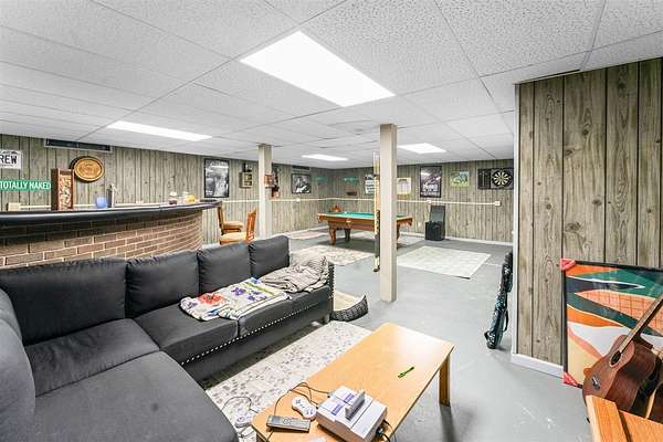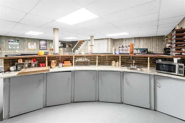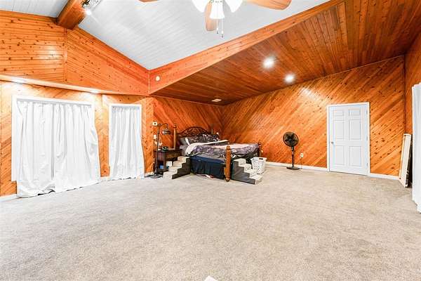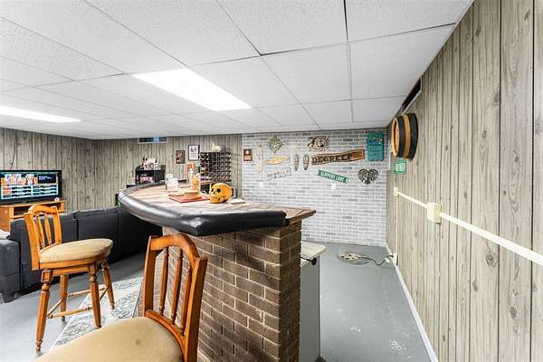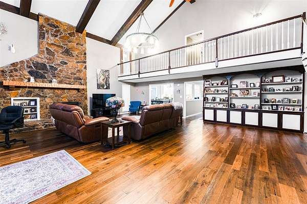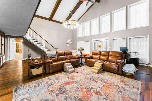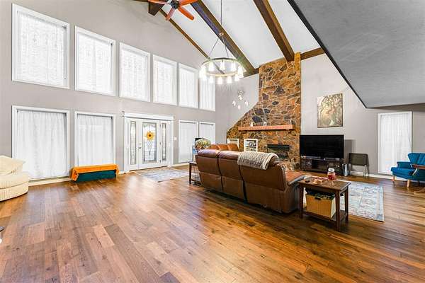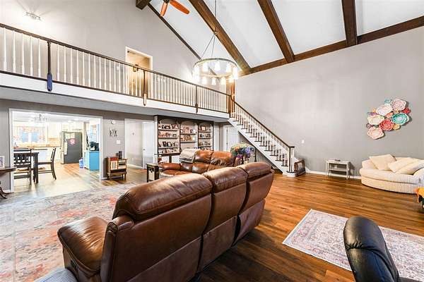Discover this exceptional property just outside Leitchfield city limits! Featuring a breathtaking two-story living room with vaulted ceilings, abundant windows, and a striking stone gas fireplace, this home offers warmth and grandeur. Enjoy 3 extra-large bedrooms, including a master suite with dressing room and walk-in closet. Comfort is ensured with 3 HVAC units, electric and natural gas. The finished partial basement boasts a spacious rec room and huge wet bar-perfect for entertaining. Outside, you'll find two attached two-car garages, a 24x36 storage/workshop building, and 2 acres of land for endless possibilities. This rare combination of space, style, and convenience is waiting for you. Schedule your showing today! One or more photo(s) were virtually staged.