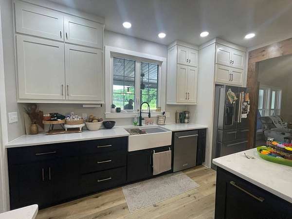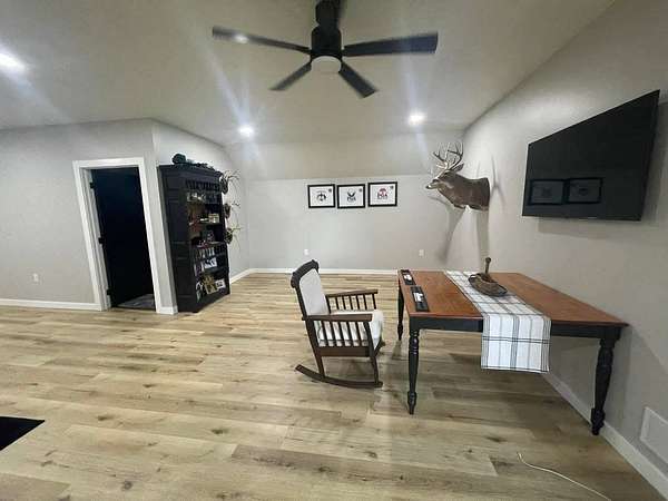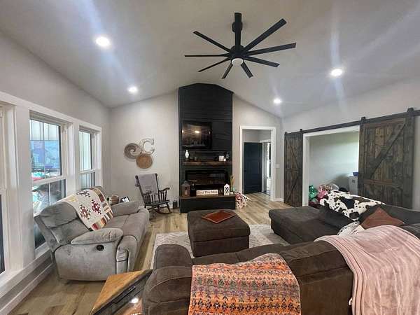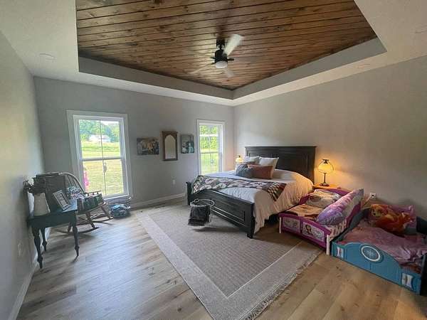 This 2 story home is located at the end of the cul-de-sac and sits on 2.21 acres with frontage on a small creek and plenty of space to roam. The first story features a large master bedroom (with tray ceiling), master bath with tub and a walk-in shower (tile), large walk-in closet, 2 bedrooms on the opposite end of the house that has a Jack & Jill bathroom between them, laundry room, office space, open kitchen with shaker style cabinets and an over-sized island that opens into the living room and the dining area. All stainless steel kitchen appliances will remain with the house. The upstairs walks into a large living space (carpeted) that has endless possibilities of entertainment or work related uses. Also located on the 2nd story is an oversized bedroom that has its own full bath perfect for your guests. On the outside of this home you will find a relaxing space on the back patio that has some covered space with ceiling fans and a large stamped concrete pad. The concrete driveway leads you to the 2 1/2 car garage with tons of storage space or work space. This home is ready for new owners with minimal to zero things to do but move in and make it yours. Call for an appointment to see this custom built home.