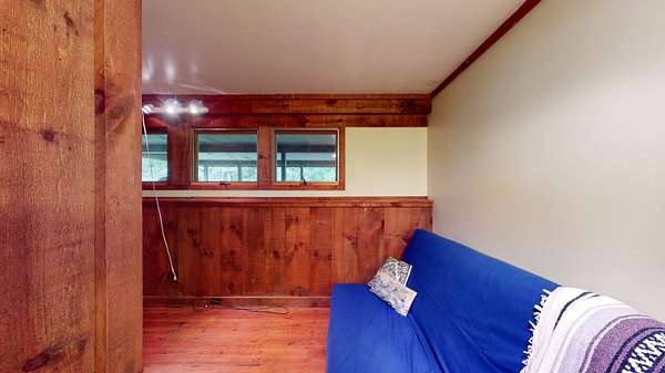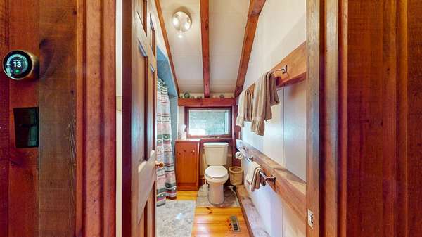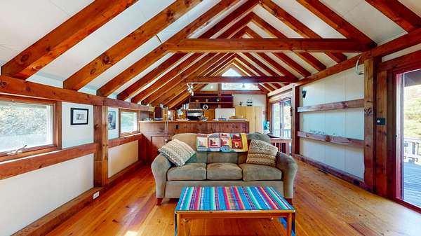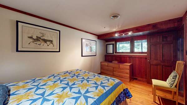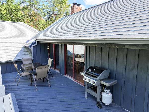 ATTENTION BUYERS! The sellers have adjusted their asking price in an effort to attract the next owner. They are HIGHLY motivated to sell before the end of 2025! Come, see, feel and experience this great house tucked in at the end of a shared/private roadway! This chalet-style, post and beam house has lovely exposed beams, large and open spaces and a fabulous deck! Pine boards grace the floors of this home giving it a warm and inviting feeling along with a little bit of rustic charm. Adorned with well-placed windows and a centrally located wood stove this 1977 house is comfortable and enjoyable to be in! Peak-a-boo views from the living/dining room and deck towards Snake Mountain offering stunning sunsets. Main floor living with a mudroom, living/dining, kitchen, bedroom, office/study and a full bath. In the lower level you'll find another bedroom, laundry/storage, another full bath and an overflow room - perfect for a short-term guest or a hobby shop! Let the dogs roam outside within a tall fence and take a walk into the woods to meet up with neighbors. Recently upgraded septic, roofing shingles and exterior painting. What will it take to make this your next home?