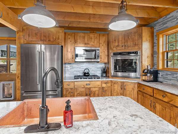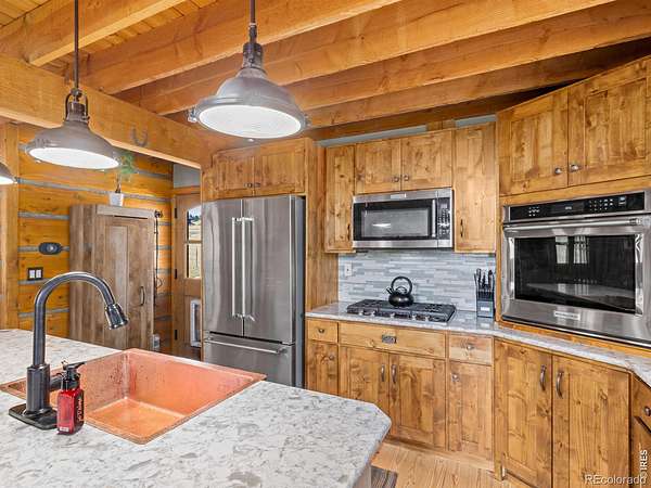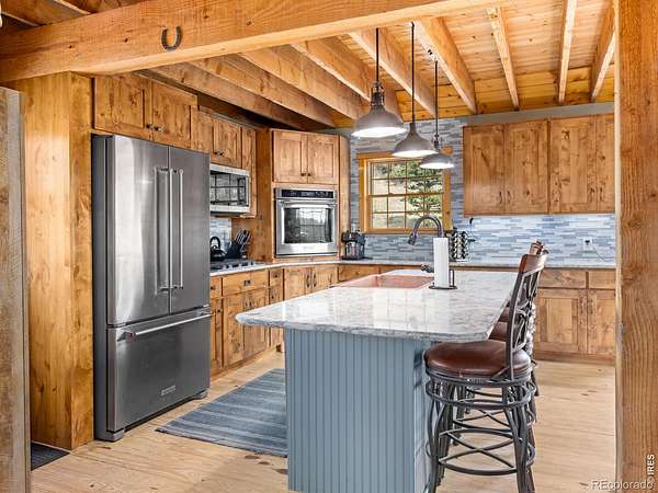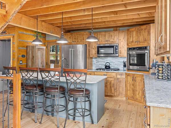 Est $2,622/moThis one is a charmer and has all the feels!!! Set on nearly 2 acres of flat, usable land, this charming 2-bed log cabin captures true mountain living. Inside, enjoy vaulted ceilings, a wood-burning fireplace, and a warm, rustic feel. The remodeled 2019 kitchen and bath feature granite counters, copper sinks, and a kitchen island. A versatile loft adds flexibility as an office, studio, or even a 3rd bedroom, while the expansive wraparound deck showcases meadow and mountain views. Easy year-round access via county-maintained roads.