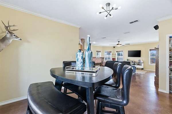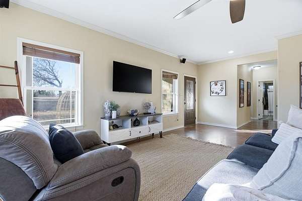 Experience true Texas country living on five beautiful acres outside Cisco's city limits in this custom three-bedroom, two-bath home designed for comfort, space, and modern functionality. Inside, you'll find large bedrooms with generous closet space, a walk-in pantry, and a beautiful kitchen featuring abundant cabinetry, stainless steel appliances, and a seamless open-concept flow to the living area--creating the perfect layout for everyday living and entertaining guests. Relax and unwind in the private primary suite, complete with a spacious walk-in closet, soaking tub, and separate shower, while a bonus room tucked behind the suite offers an ideal spot for a home office, craft room, or quiet retreat. An attached two-car garage provides convenient parking and entry, and a separate storage shed offers additional space for tools, equipment, or hobbies. The wrap-around porch captures peaceful views and stunning Texas sunsets, and the wide-open acreage provides endless possibilities for livestock, gardening, recreation, or future expansion, all while keeping you minutes from town. This move-in-ready property delivers the kind of space, comfort, and country charm that truly stands out--you won't want to miss this one.