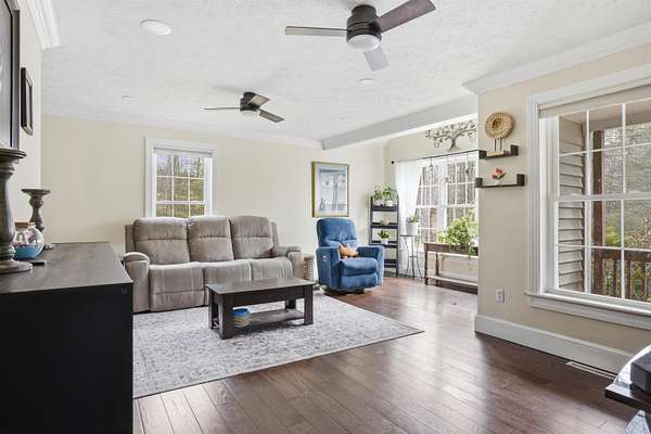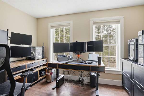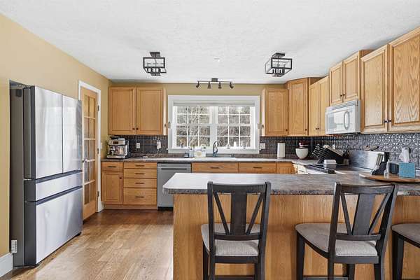 This thoughtfully updated and immaculately kept Contemporary Colonial in Rindge, NH offers something for everyone. Enjoy all the Monadnock Region has to offer from this custom home. Roomy, workable kitchen with pantry and island features new Samsung Induction Cooktop, Bespoke refrigerator, Whirlpool dishwasher and Double Oven with an Air Fryer. The dining room and living room feature dark hardwood pre-engineered flooring, tons of daylight, and a new Harman Pellet stove. On the second floor, new Luxury Wide-Plank Vinyl floors in all bedrooms, a gorgeous Primary bath with jetted tub, and "his" and "hers" walk-in closets with custom cabinetry and shelving. The Primary Bedroom features a gas fireplace with fieldstone mantel and surround. In the basement, a huge finished family room with walkout doors and plenty of natural light, and for the European flare, a true Sauna, professionally built, along with a 3/4 bath. The perfect place to relax, and truly a unique feature. This space also lends itself to "in-law" accommodation. Underneath the two-car attached garage, an engineered "parking garage" type basement allows tons of basement storage, offering the best of both worlds. Finished family room without sacrificing storage. There's more still, with an amazing 46 x 30 detached garage/shop serviced by separate underground electrical and meter. Room for 4+ vehicles, and a finished, heated room at the back which is perfect for a studio, workshop, office space, etc. Possible ADU or rental income here, separate and distanced from the residence. Please see attached list of Special Features and Improvements, as there is far too much to list here! Rindge is home to Franklin Pierce Law School, has both a Hannaford's and Market Basket for grocery shopping as well as a Wal-Mart. Quintessential New England living, privacy, yet convenient to all amenities. Lovely Grassy Pond is across the road and nearby the iconic Cathedral of The Pines.