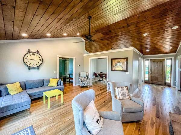 Perched on nearly 4 acres with sweeping views of Dale Hollow Lake and the surrounding mountains, this 4-bedroom, 3-bath ranch offers the kind of lifestyle most people only dream about. One-level living at its finest, with a thoughtfully designed layout that takes full advantage of the setting. The master suite features French doors opening to lake and mountain views, plus an ensuite bath with soaking tub, walk-in shower, and dual vanities. Two additional bedrooms share a hallway bath on the main level. The spacious kitchen is built for entertaining with a gas range and wet bar complete with a second refrigerator. A tranquil home office rounds out the main floor. Downstairs, the full finished basement is flooded with natural light and adds serious living space: a fourth bedroom with full bath, flexible bunk room, living room, and game room. Perfect for guests, family, or rental income. Outside is where this property truly shines. Watch the sunset over rolling hills from rocking chairs on the front porch, or take in panoramic lake and mountain views from the oversized back deck. The hot tub (installed 2023) makes every evening feel like a getaway. Located just 1 mile from Hendricks Creek Marina with no HOA restrictions. Currently operating as an active short-term rental generating over $42,000 in annual revenue. Whether you're looking for a forever home, a lake retreat, or a proven income-producing property, this one checks every box.