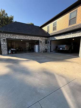 Oakland with Arlington mailing address. Spacious home on a 2.19-acre corner lot with pond and water views. Enjoy low county taxes and a well-designed layout featuring a custom heavy iron front door and two attached garages plus a large extra parking pad. Primary bedroom down with walk-thru shower and dual vanities; second bedroom down with full bath. Upstairs offers two additional bedrooms, full bath, and a large game room. Kitchen includes a porcelain-covered cooking wall and double stoves. Laundry room features a glass door and reclaimed wood accent wall. Unique pet area and sitting nook under the stairs. Stairwell to second floor is located off the garage hallway for added privacy. Home includes 3 HVAC systems, well water, septic, and natural gas. Large covered patio ideal for grilling and outdoor living.