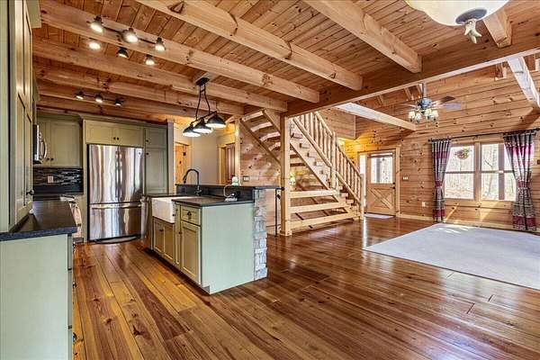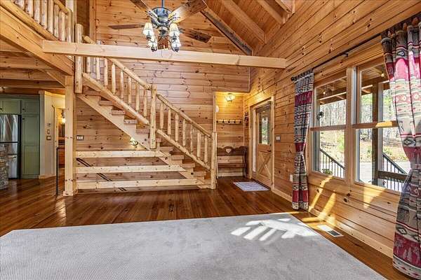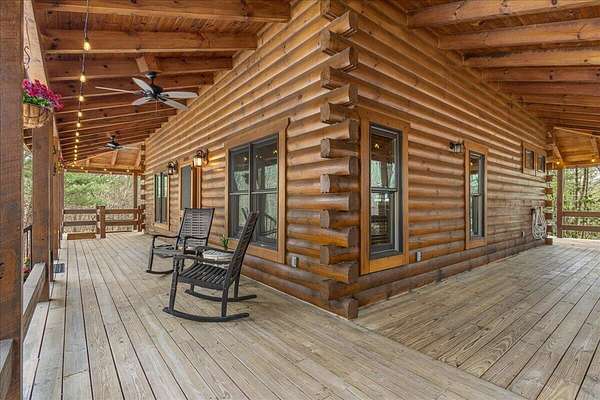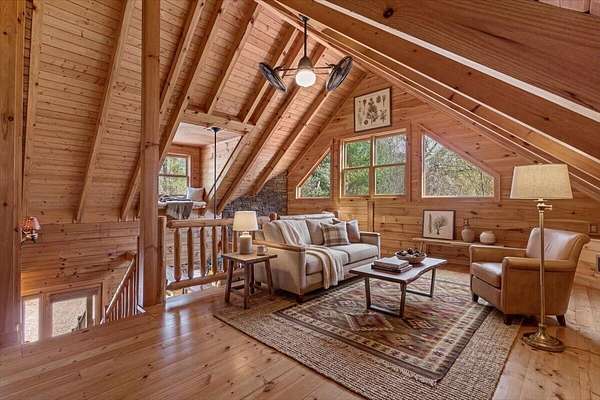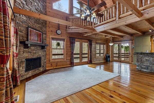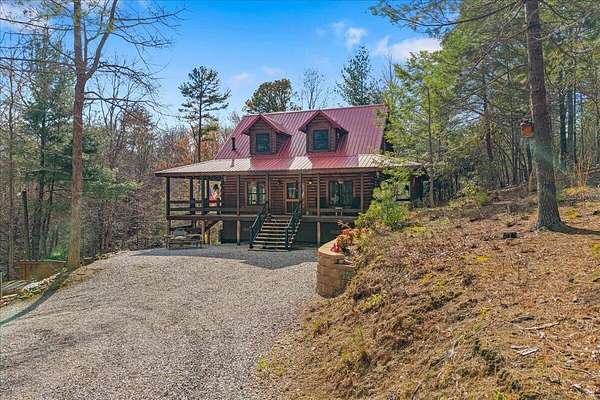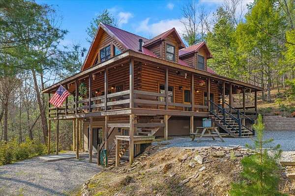 Experience mountain living at its finest with this one-of-a-kind custom log home nestled against the Cherokee National Forest in beautiful Coker Creek. This 3-bedroom, 3-bath, 3-level retreat offers 2,390 sq ft of thoughtfully designed living space, surrounded by nature and complete with a full wraparound porch--perfect for enjoying peaceful mornings or relaxing evenings in the mountains. Inside, the open-concept layout features a stunning custom kitchen with leathered granite countertops, a farmhouse sink, soft-close cabinetry, dual pantries, and a large island with architectural stone accents. The great room showcases a floor-to-ceiling stone gas fireplace, heart pine flooring, and rustic finishes that create a warm, inviting atmosphere. Each level offers its own bedroom and bathroom, providing privacy and flexibility for guests or multi-generational living. The spacious loft includes a bright office area, while the fully finished lower level is ideal for a second living space, game room, or private retreat. The primary suite is a true escape, featuring a live-edge vanity, hammered copper sink, and a walk-in shower with river rock flooring. Located just 15 minutes from Tellico Plains, you'll enjoy convenient access to dining, shopping, and outdoor recreation--while still feeling completely tucked away in your own private mountain retreat. close to the Tail of the Dragon and Cherohala Skyway. Definity check out the county website If you've been searching for a peaceful escape with character, craftsmanship, and modern comfort--this is it. *There is a concrete pad out on basement level that is already wired for a hot tub/spa