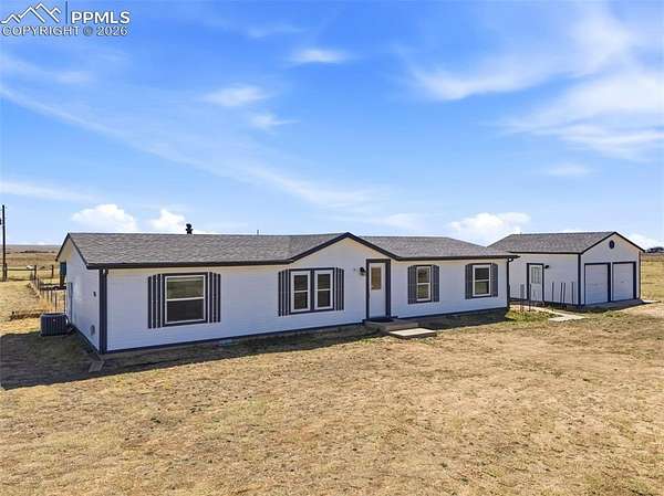Tucked away in a peaceful cul-de-sac just 20 minutes from Colorado Springs, this charming rural retreat offers the perfect blend of privacy, space, and modern comfort. Conveniently located off Hwy 94 and Elliott Hwy, and within close proximity to both Peterson and Schriever Air Force Bases, this property provides easy access to city amenities while maintaining a serene country lifestyle. Situated on 5 expansive acres, this property is zoned for horses and welcomes a variety of animals, giving you the freedom to create your ideal homestead. Whether you envision raising chickens, keeping livestock, or simply enjoying wide-open space, this fully fenced and gated property offers both security and versatility. The property also includes an outbuilding and shed, providing additional space for storage, equipment, hobbies, or animal-related needs. The home features 4 spacious bedrooms and 2 bathrooms, making it ideal for families or those seeking extra room. Inside, you'll find an abundance of natural light streaming through expansive windows, creating a warm and inviting atmosphere throughout. The thoughtfully designed kitchen boasts ample cabinetry, a large center island, and a dedicated dining area that overlooks the backyard-perfect for both everyday living and entertaining. Recent updates include brand new carpet, remodeled bathroom, fresh new interior and exterior paint, and brand new gutters, ensuring a move-in-ready experience with added peace of mind. Outside, the oversized 2-car detached garage provides plenty of room for vehicles, storage, or workshop space. With its combination of modern updates, functional land use, and convenient location, this property offers a rare opportunity to enjoy the best of Colorado living-peaceful, private, and full of possibility.