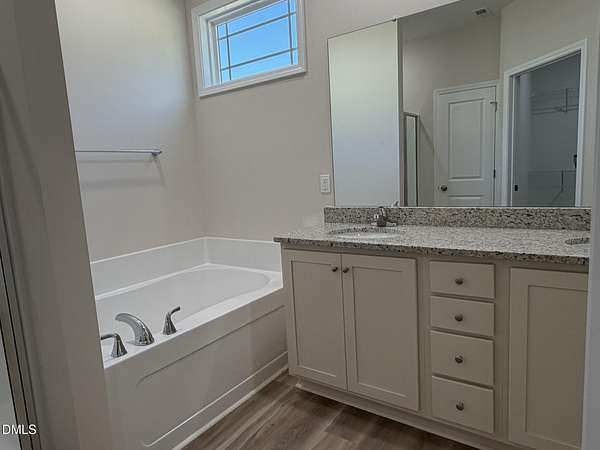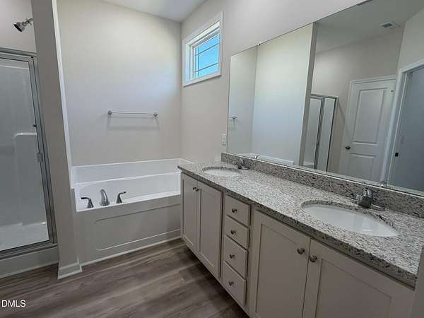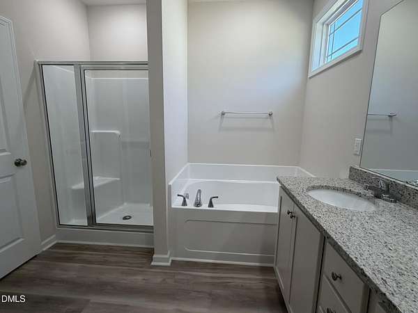 - Bathtub/Shower Combination, Ceiling Fan(s), Granite Counters, Primary Downstairs, Separate Shower, Smooth Ceilings, Soaking Tub, Tray Ceiling(s), Walk-In Closet(s), Walk-In Shower