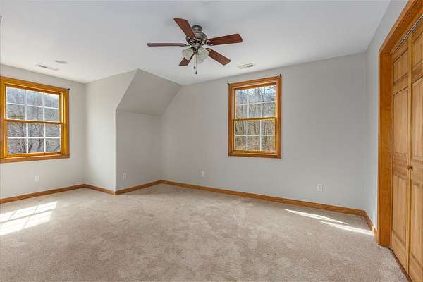 Est $3,268/moPrivate mountain home on 10+ acres in the Jonathan Creek area of Haywood County. Finished living space on two levels, with an unfinished basement and two-stall garage. 3 bedroom/3 bath, with a bonus room on the second floor. Covered deck with seasonal long-range views. New roof installed in 2026. New propane heat pump that services the main floor. New refrigerator and dishwasher. Home includes a radon mitigation system.