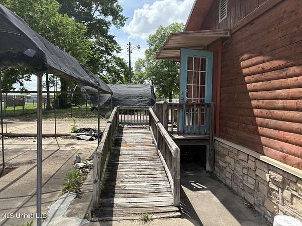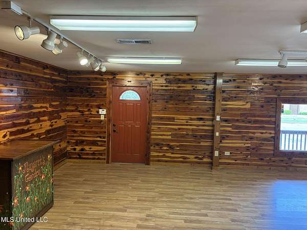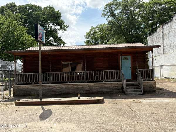 205 N Hayden, Belzoni, MS 39038 A unique 1081 sq ft. Commercial log cabin building in Belzoni,MS sitting on a spacious 3 acre lot. The large front porch across the front makes an excellent display spot or a place to sit and relax. There are 2 separate rooms with the main room adorned in beautiful cedar walls. and nice laminate floors. The main room is roughly 700 sq ft with the rear storage area making up the remainder of the floor space. The storage area has a private 1/2 bath and a kitchenette for your comfort. It has a metal roof and central heating and cooling. This building would make an excellent salon, office, shop or any variety of other uses. Located across from Guaranty Bank with plenty of traffic exposure. The large lot is partially fenced with the remainder open.