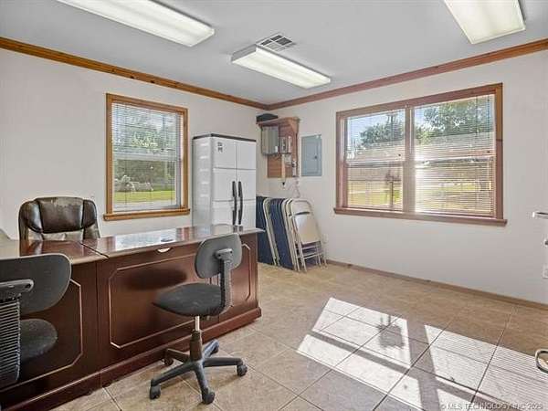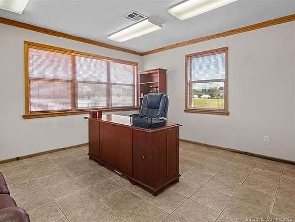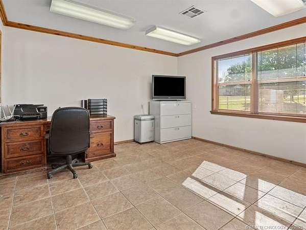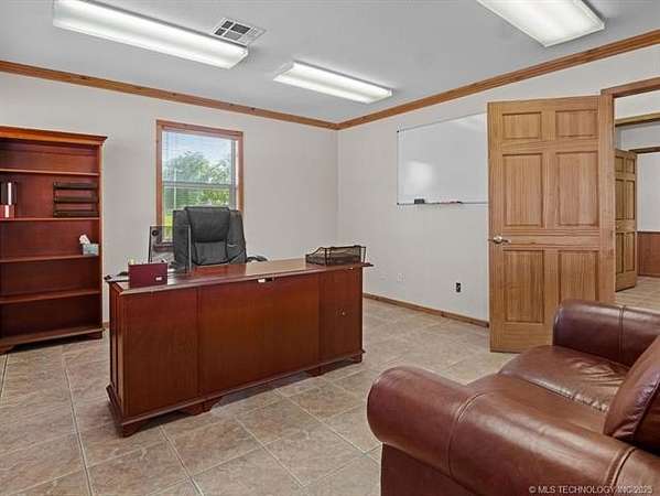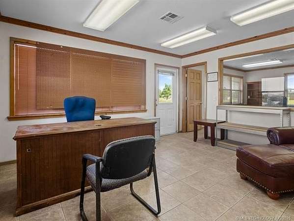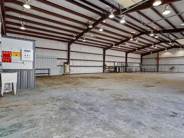 Exceptional Investment Opportunity on Highway 69/75 Located in Tushka, OK. The property is just 2 hours north of Dallas and 2 hours south of Tulsa. This prime commercial property offers outstanding potential 50' x 120' 5-Bay Metal Building, Insulated structure with infrared heaters and equipped with a commercial air compressor. Also, includes a bathroom and outdoor wash bay with power washer. Property also includes 1350 sq ft office building featuring 4 private offices 2 bathrooms and kitchenette for staff convenience. All situated on approximately 2.5 acres (m/l), fully enclosed with a sturdy pipe fence. A rare opportunity in a high-traffic corridor with room to grow.