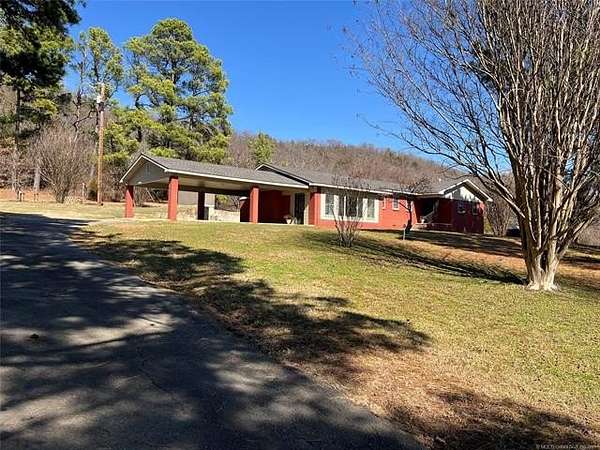 This immaculate,energy improved Country Home crowns the top of a gently rolling,5.07 m/l open land tract with scattered trees,fabulous view of Panther Mountain.Located on a dead-end location surrounded by timber in the back,this fascinating setting is simply a rare find!It is a tranquil,serene setting! In addition there is a set-up for a 2nd home w/ septic,water and electric.Ideal for another house.There are no restrictions! A rare feature is the level grounded storm/root cellar built into a slight hillside w/ a metal garden shed on top.There are 3 other storage sheds & an older barn ready to be repurposed.It would be an ideal spot for chickens.Enjoy country living away from the hustle and buzzle of a hectic City Life. Kids have room to roam.This fascinating Home was built in 1971 w/ a brick pillared 30'x20' feet attached carport. The country kitchen is a delight. Spacious utility room w/closet for pantry,ample space for freezer and entrance to the back yard. A fetching feature is the sunken living room w/decorative gas fireplace,deep window sills perfect for your potted herb garden & stunning view to the mountain. It is one of those rooms you can envision yourself relaxing in a recliner taking a snooze.The Owner upgraded to energy efficient, new central heat & Air/Heat Pump, 40 gal. water heater, cook stove, vent-hood, dishwasher and many other improvements. Natural gas is on site but not hooked up. There is also an old water well on the property. The current Owner has no knowledge how deep it is and has never utilized it. Explore Robbers Cave 25 min. from this location. Take a horseback ride along the scenic bluff, fish to your hearts content, go swimming or take a hiking tour up to the Cave. Lake Eufaula is also within 20 min. and offers fishing tours, tournaments. Public hunting, fishing & bird watching is available at the James Collins Wildlife Management area, just 8 miles west of Quinton. Come take a look and soak in the beauty of this enticing property.