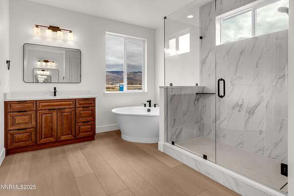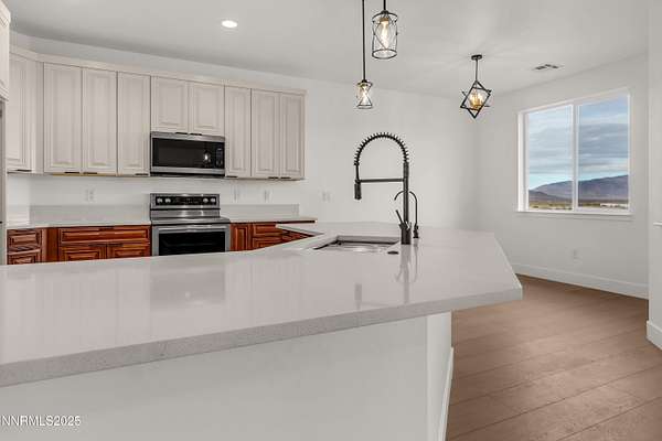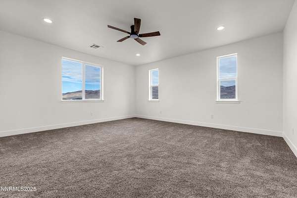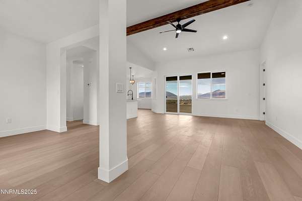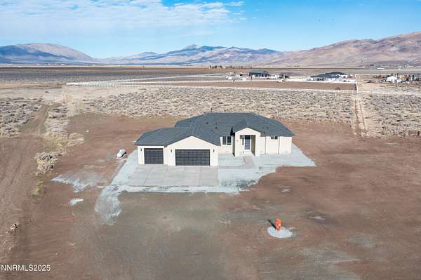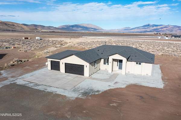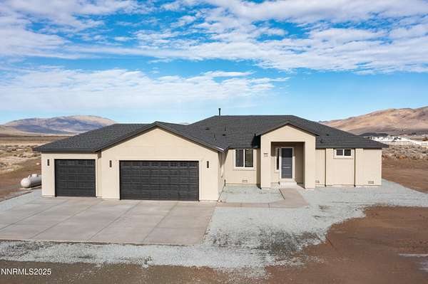 Showing now! New Construction on nearly 5 Acres with NO HOA. Enjoy the Palomino Valley lifestyle with outstanding daytime mountain and valley views and nighttime views of amazing starlit skies. This home features a split plan with spacious and beautiful primary suite with dual walk-in closets, dual sinks, private toilet, walk-in shower, free-standing tub, ceiling fan, and direct access to the covered patio. The second and third bedroom share a bath on the opposite end of the home. The kitchen has beautiful two-tone tall cabinets with quiet close hinges and drawers, stainless appliances, large contemporary stainless sink and black faucet. Additional features include upgraded high capacity well pump, whole home water filtration system, tank less gas water heater, laundry sink, RO Water Filter, covered patio, and room for additional buildings and RV Parking. Horses and other animals are welcome here. You are just minutes away from outdoor activities at Pyramid Lake, Moon Rocks, and riding, hiking, etc. Shopping, groceries, restaurants, car wash/services, pharmacy, emergency care, and schools are within 25 minute drive time. Washoe County Schools bus service is available to and from public schools. New Construction on nearly 5 Acres with NO HOA. This is the first of five homes to be built nearby.