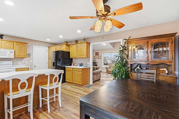 Welcome to 205 Red Top Rd in Buffalo, a well maintained single level 3 bedroom 2 bathroom home situated on 3.78 peaceful acres with a spacious shop. Enjoy relaxing mornings on the covered front porch while watching wildlife and taking in the quiet setting. Inside, the home offers a spacious living room with vaulted ceilings and an inviting layout. The eat in kitchen features a bar for seating, ample cabinet space, an attached dining area and direct access to the backyard, plus convenient entry from the garage making unloading groceries a breeze. The primary bedroom is located on the opposite end and back of the home for added privacy and includes tray ceilings, a private bathroom with dual sink vanity and a walk in shower. Two additional bedrooms share a full hall bathroom and there is generous closet space throughout. Outside, the 25x50 shop includes three garage bays, electric, and a concrete floor, offering plenty of room for vehicles, hobbies or storage. This property is ideal for those seeking a comfortable one level home on acreage with room to spread out and work or play.