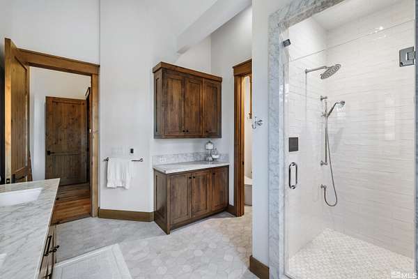 Mountain Luxury Meets Outdoor Adventure Set against the breathtaking backdrop of the Sierra Nevada and overlooking Nevada's top-ranked private golf course, this extraordinary estate in Clear Creek Tahoe offers the perfect blend of adventure and elegance. Nestled on over 2 acres within this exclusive gated community, the home's masterful Timber construction seamlessly integrates with its natural surroundings, providing a warm and inviting retreat for those who crave both excitement and serenity. Step inside to an open, light-filled living space designed for effortless entertaining and relaxation. Expansive windows frame panoramic golf course and mountain views, while rich wood accents and elegant finishes enhance the home's timeless appeal. The spacious design flows seamlessly from the gourmet kitchen"equipped with top-tier appliances and generous prep space"to the inviting great room and out onto a sprawling covered porch. Evenings here are best spent outdoors, where you can grill in the fully equipped outdoor kitchen, unwind in the luxurious hot tub beneath a starlit sky, or simply soak in the peaceful mountain air. For guests or extended stays, the charming guest house offers a private retreat with a full kitchen, cozy gas fireplace, and an oversized RV/boat garage"perfect for storing all the gear you need to explore Lake Tahoe and the surrounding wilderness. Timber Bliss is more than a place to live it's a gateway to the ultimate mountain lifestyle. Whether your days are spent on the fairways, hiking rugged trails, or skiing world-class slopes just a short drive away, this property delivers the perfect balance of outdoor adventure and refined living. Don't miss the opportunity to make this stunning mountain retreat your own. Clear Creek Tahoe is more than a community, it's a lifestyle. Anchored by Nevada's #1 ranked residential golf course, it offers an unparalleled blend of mountain and lake amenities. The private Lake & Ski House provides 180 feet of sandy beach, water sports, and shuttle service to Heavenly Ski Resort. Summit Camp is a hub for recreation with a pool, water slide, hot tub, tennis, pickleball, and bocce. At the heart of it all, the spacious Clubhouse features a year-round wellness and fitness center, ensuring adventure and relaxation in every season.