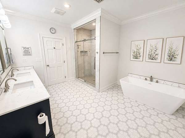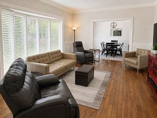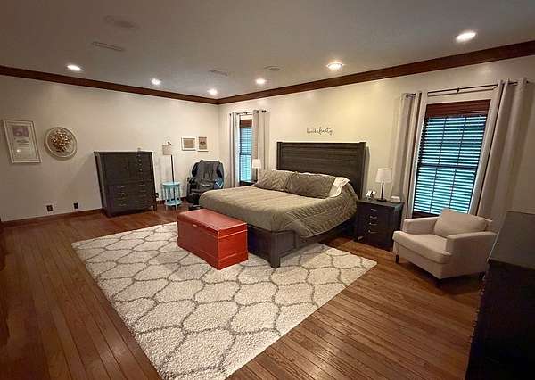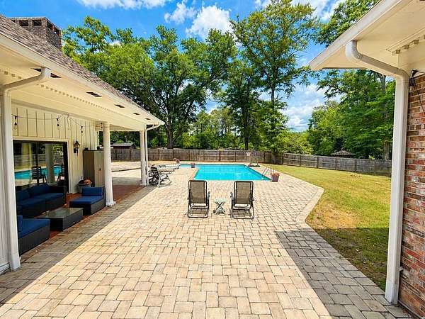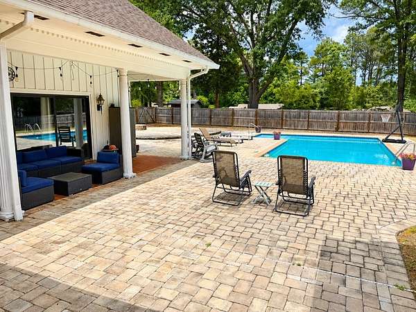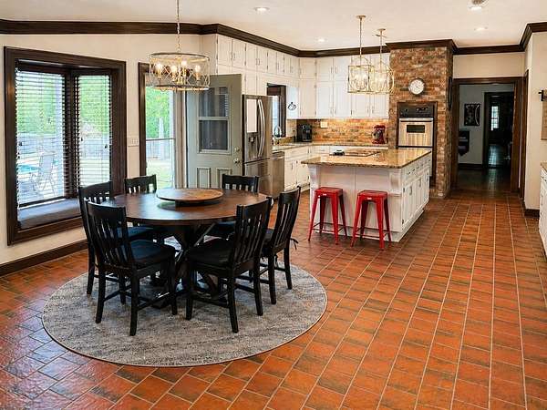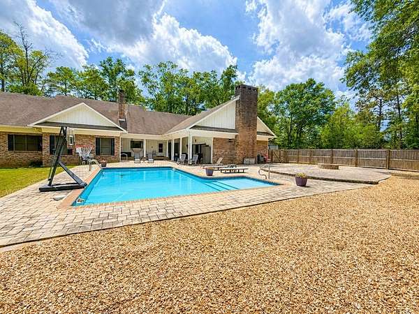 Beautiful estate offering nearly 6,000 sq ft of one-level living with an additional 3,000 sq ft basement, perfectly blending space, comfort, and craftsmanship. Rich hardwood floors and stunning wood trim and moulding highlight the home's timeless character throughout. The spacious layout is ideal for both everyday living and entertaining. Newly remodeled bathrooms add a fresh, modern touch while maintaining the home's elegance. Step outside to your private retreat featuring a saltwater pool, fenced yard, and nearly 3-acre lot with plenty of room to enjoy. A rare RV garage provides exceptional storage for recreational vehicles or additional equipment. This property offers the perfect combination of luxury, functionality, and privacy in a serene setting.