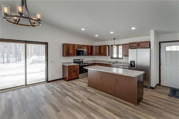 Fantastic location—close to downtown Walker with easy access to all trail systems and numerous regional lakes, including Leech Lake. Ideal for multi-gen living, house-hacking, or as a portfolio investment hold. New construction duplex sold as one property—mirror-image ranch floor plans with 2 bed / 2 bath per side (total 4/4 if combined). Open-concept living, slab-on-grade foundation, and low-maintenance exterior. Quality specs throughout: LP siding/trim, 30-year architectural roof, Marvin Elevate casement windows. Interiors feature carpet + vinyl plank flooring, alder cabinets (light stain) with coordinating countertops, included lighting package, and white textured paint. Target completion 1/1/26. Appliances included (range, fridge, microwave, dishwasher, washer & dryer) or $4,000 appliance credit at buyer’s option. Mechanical highlights: Broan air-exchange (10-yr warranty), 50-gal electric water heater (10-yr). Site features: asphalt driveway/parking, concrete sidewalk & patio, landscaping (grass yard), 4" constant-pressure well (22 GPM, 5-yr warranty) with pump/tank, and 32k water softener. No HOA; utilities by owner.