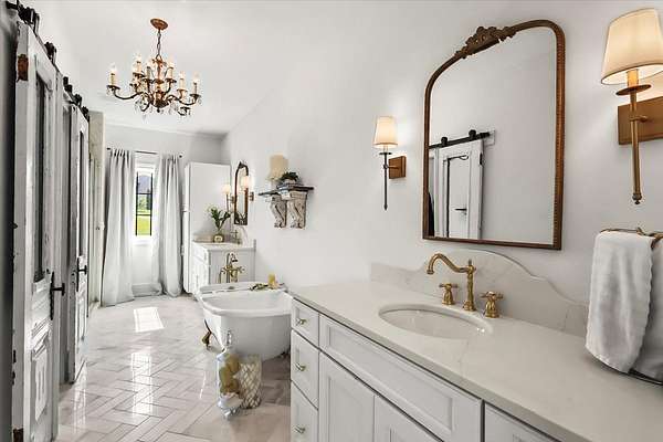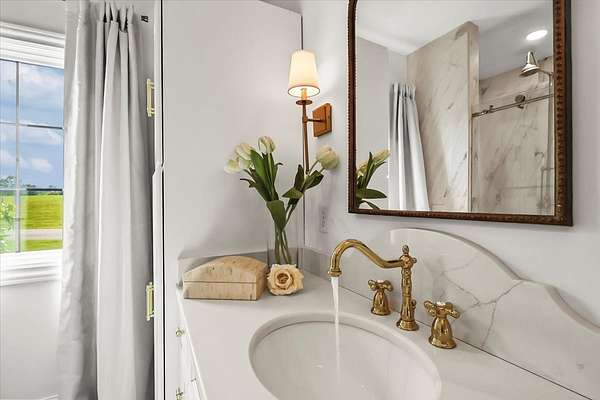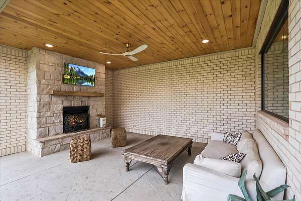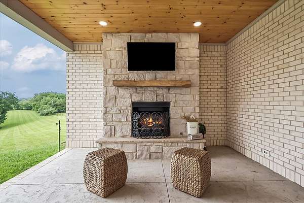 Custom built home that has been meticulously maintained located in the sought after Stone Trace Subdivision. 4.99 acres of gorgeous land with a pond to enjoy while sitting on your covered porch with a fireplace and a half bath. Inside features Pella windows, a chefs kitchen, pan filler, gas range, drawer dishwasher and a drawer microwave. You will love the view of the land from the living and dining area and kitchen! The owner ensuite offers a walk in closet, walk in shower, double sinks, pocket doors. The office is quiet and offers glass doors. When you walk in the walk in pantry you'll find another range and countertops galore! The bedrooms upstairs each has their own bathrooms with walk in closets. There is a lawnmower garage that can be used as a storm shelter. You have to see this home in it's glory to believe it!