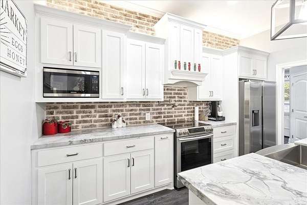 Stunning 3-bedroom, 2-bathroom custom-built masterpiece on 4.3 acres! Features include an open concept, luxury vinyl plank flooring throughout, gorgeous island kitchen with cabinets galore and Dolomite counter-tops, brick backsplash to the ceiling adding the right touch. The large living-room features a beautiful wood burning fireplace and amazing mantle with brick surround and shiplap to the ceiling! The master suite is to be envied with huge bedroom, gigantic bathroom with long vanity with his & her sinks, freestanding soaker tub & giant walk-in shower, huge walk-in closet conveniently connecting to the laundry room. Plus, a connection to an office off the master bedroom down private hallway. Two additional bedrooms downstairs and a nice hall bath with tiled tub/shower combo. Bonus room upstairs could be used as 4th bedroom. Outside enjoy the amazing Gunite pool & cabana with outdoor kitchen and half bath plus large, covered patio. Nice shop with carport & storage, hen house & more!