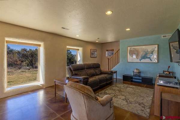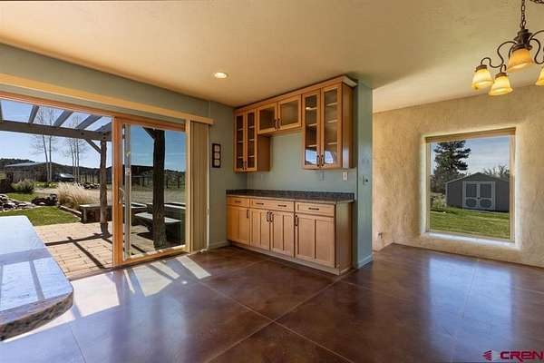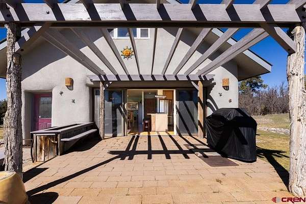 Sara Staber, Keller Williams Realty Southwest Associates, LLC, C: 970-759-5033, Sara@SaraStaber.com, DurangoColorado.com: Located only 4.5 miles east of Durango city limits and a half-mile off Highway160, this property offers a unique combination of a private rural setting yet only minutes from town amenities. 205 Toad Road presents a 1,738-square-foot residence on an expansive 14.03 acres, with close proximity to schools and the hospital, and no HOA. ~ ~ This two-story southwestern style home features two bedrooms and two bathrooms, one located on each level. The remodeled main level has an open floor plan with handsome stained concrete floors providing efficient in-floor radiant heat along with the south facing windows for passive solar gain. The kitchen is finished with solid maple cabinets, granite countertops, a center island with a cooktop and contemporary style hood, plus a separate buffet service area. Double sliding doors provide views and access to a lovely east facing outdoor living area: a pergola-covered porch, lush lawn and a recirculating waterfall feature. The perfect place to hang out in the shade on warm summer afternoons! ~ ~ The second level serves as an open primary suite with mountain views, from a private west-facing sunset deck, and plenty of room for an office or hobby space. This area has been recently refreshed with new paint and flooring, being left intentionally open to allow options for the new owner. There is a closet at the top of the stairs and the two eastern dormer bays were used as closets with storage modules. The south-west dormer bay is also plumbed for both water and gas. Unused space under the eaves could also be converted for additional storage. The Rinnai on demand hot water heater, servicing the entire home, is located in the north cubby. Upstairs heat is provided by three electric baseboard heaters, on 3 thermostats.~ ~ The home is built of sturdy post-and-beam construction with extra thick insulation for amazing energy efficiency, and creating deep window bays accenting the southwestern character. The exterior is stucco with metal roofing.~ ~ A big bonus is the detached 'two truck’ garage and shop. This is a large 30 x 26 steel frame building with a stucco-ed exterior. The footprint is 780 square foot. Built in 2006, it is fully insulated, and sheet rocked, including a finished 2nd floor storage/studio area above. The garage has 110/220 electric, it is not plumbed nor heated, but water is nearby. ~ ~ The home, outbuildings, horse set up and pastures are all clustered on the eastern section of the 14.03 acres. The property stretches west across Long Hollow draw and into an expansive natural area, with plenty of room to roam, enjoy nature and the wildlife passing through.~ ~ It is horse ready with two fenced pastures, both on an underground irrigation system. There are two loafing sheds, each with a fenced dry lot connected to respective pastures plus one covered shed for hay. Additional outbuildings include a covered RV/boat or equipment storage shed and an enclosed garden shed. ~ ~ Water is supplied by two permitted ‘domestic’ use water wells, both had high gpm when drilled. The original shared well, connects to and supplies the home. The 2nd well, which is on the listed property, is used currently for 1 acre of irrigation and landscape, as per permitted well use, but is also connected to the home if ever needed. See Addendum.~ ~ The home is ready to go, it is pre-inspected and the septic has been pumped & inspected, with county docs on file. Utilities are reasonable, just electric and propane. Toad Road runs along the east side of the property and dead ends at the two homes just beyond. 205 has it’s own private driveway off Toad. Road maintenance is informal, neighborly and shared, with no fee. In fact there is NO HOA, covenants or fees of any sort! This home is a great option for those wanting independence, privacy and space but also proximity to town.