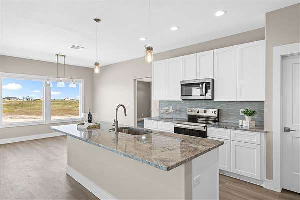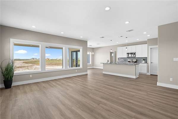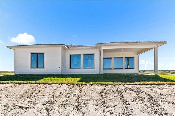 Nestled within the peaceful waterfront community of Sunset Bay, this newly built home offers the perfect blend of coastal charm and modern comfort. Set on 6.1 scenic acres with a private pond and view of Port Bay, it's a serene retreat for those who love space, nature, and the coast. Inside, the open concept layout is bathed in natural light from expansive windows that frame the surrounding beauty. The home features three spacious bedrooms, including a private primary suite and a secondary en suite, ideal for guests or multigenerational living. Enjoy granite countertops throughout, tiled showers, and a convenient drop zone just off the garage to keep everyday living organized. Thoughtfully designed for durability and peace of mind, this elevated construction includes storm-impact windows, an extra-long paved driveway, and ample parking for boats or guests. Want more room to roam? This property can also be purchased with an additional 6.1 or 12.2 adjacent acres, offering endless expansion or investment. Enjoy fishing for trophy catches from the community pier or simply soaking in the quiet beauty that makes Sunset Bay one of the Coastal Bend's hidden gems.