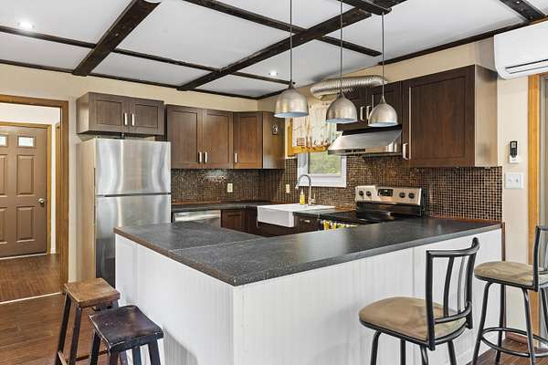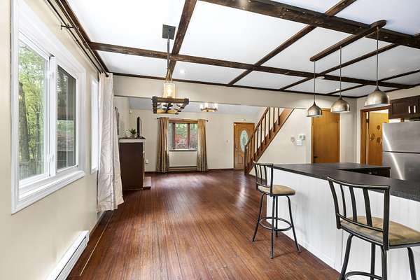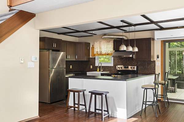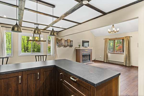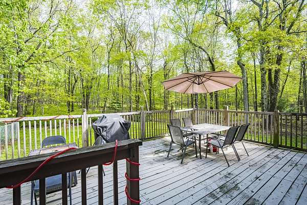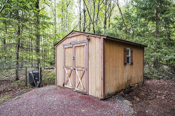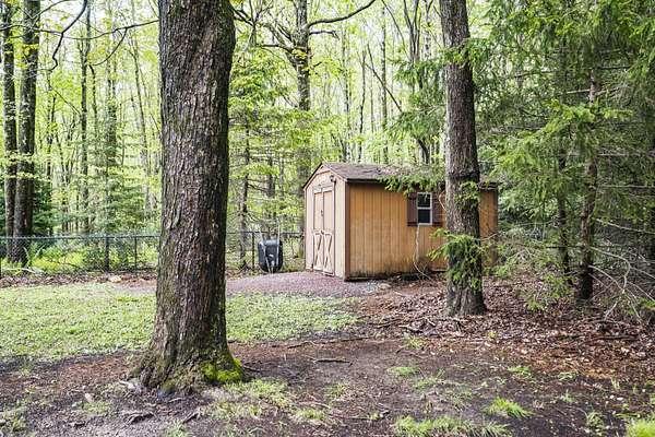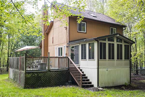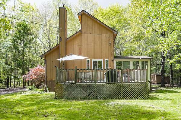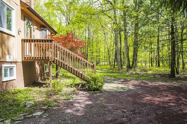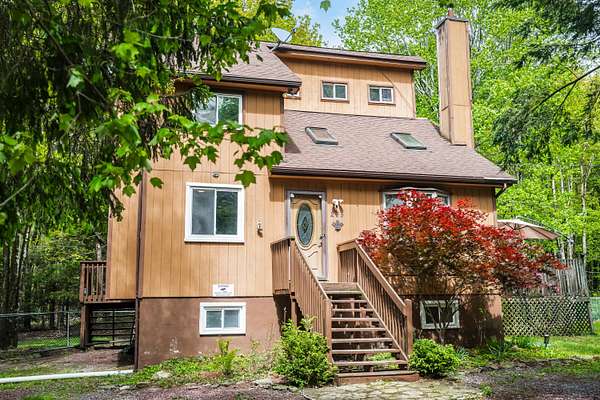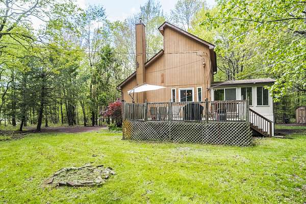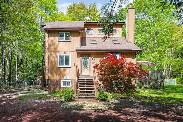 This STR-friendly 3-bedroom, 2-bath home is tucked near the end of a quiet cul-de-sac on 3 flat acres, offering the perfect blend of privacy, comfort, and practicality. The main level boasts an open-concept kitchen, dining, and living area with a cozy wood-burning fireplace, plus a bright all-season room that opens to a spacious deck-ideal for relaxing or entertaining. One bedroom and a full bath complete the first floor. Upstairs, you'll find two more bedrooms, a full bath, and a versatile loft perfect for a lounge, office, or play area. The finished basement expands your living space and includes top-of-the-line waterproofing, a new sump pump, and a new water heater for added peace of mind. Mini-split heating and cooling units keep the home comfortable year-round. Outside, enjoy a fenced area, a storage shed, and wide-open space to roam. With low taxes and a prime location just minutes from Pocono Raceway, Kalahari Indoor Water Park, Camelback Mountain Resort, and Lake Harmony, this property is an ideal full-time residence, weekend getaway, or short-term rental investment.