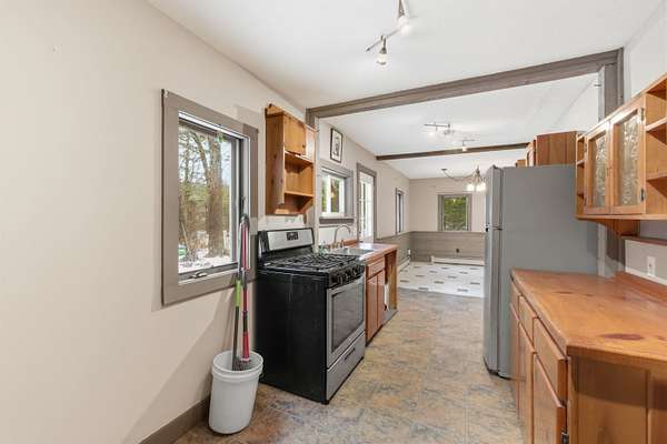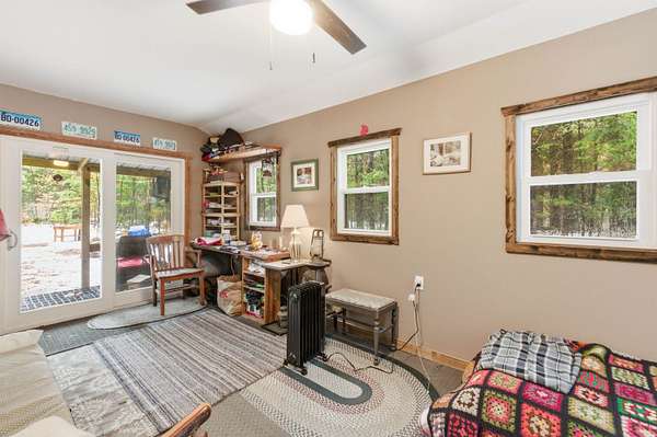 Tucked away on 10.02 private acres yet less than ten minutes from downtown Claremont's shops and restaurants. This property exudes seclusion and convenience all at your recreational disposal. Welcomed by a large pond in the front yard, the curb appeal sets a peaceful tone, while the home itself invites you to slow down and stay awhile. Inside, warm character abounds, anchored by a wood stove and a spiral staircase that leads to a partially finished basement, perfect for additional living space, a studio, or retreat. Recent updates include a new drilled well and a new standing seam roof, offering both peace of mind and long-term value. Outdoor living is where this property truly shines. An oversized covered deck provides the ideal setting for morning coffee, evening gatherings, or simply enjoying the surrounding natural beauty. Recreational amenities include a basketball and tennis court, while a charming cabin adds endless possibilities such as additional guest space, a creative studio, or a quiet escape. The two-car garage is truly the icing on the cake offering additional storage on the second level. This is a property that feels worlds away, yet keeps you effortlessly connected to town - a rare opportunity to enjoy space, privacy, and lifestyle without sacrificing location.