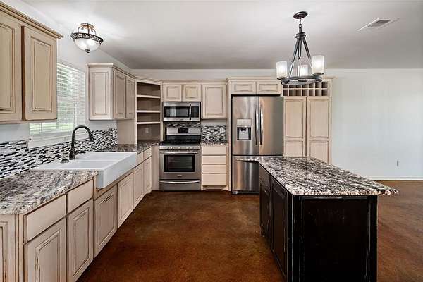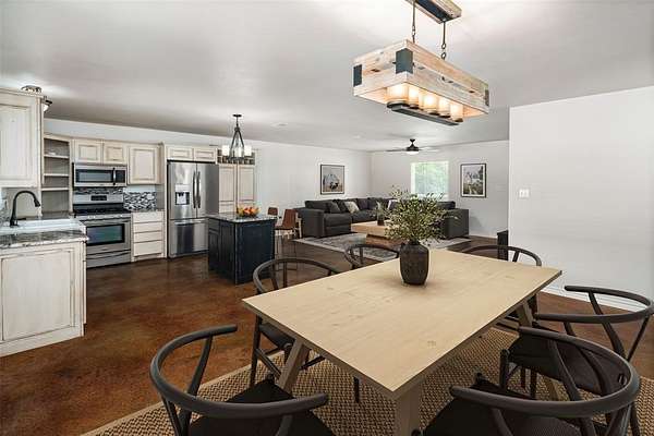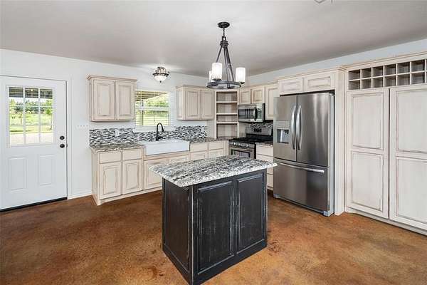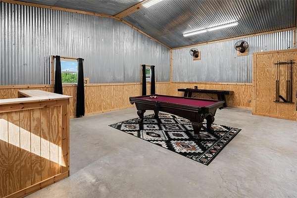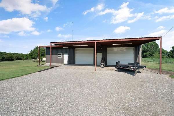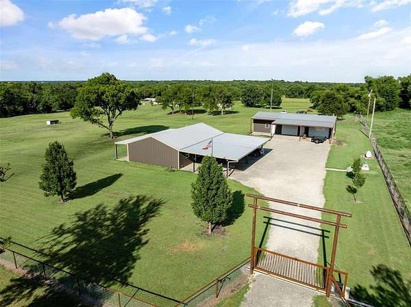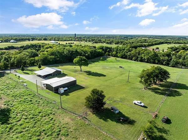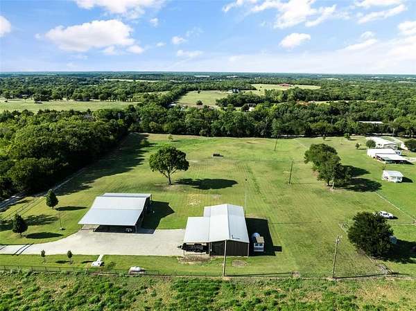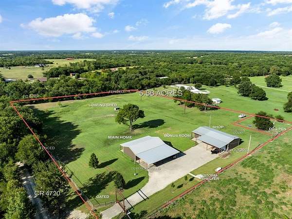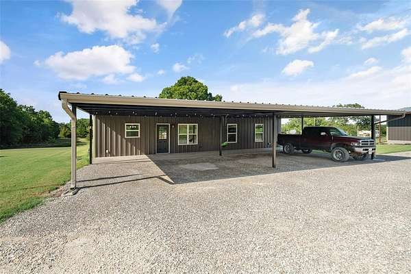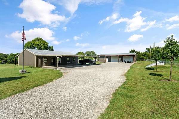 Impressive New Price! Land, Home & Shop -- This Property Truly Has It All! Your scenic country drive leads you to a beautiful 5.6+ acre, fully fenced property made up of three platted lots, bordered by a natural tree line that offers outstanding privacy. The gated entry is your first welcome, leading you to the rustic 1500 sqft barndominium, the impressive 1,200 sqft insulated shop plus 600 sqft game-flex room, generous porches, & newly added covered-parking extension. Inside, the open-concept living, dining & kitchen areas offer comfortable daily living and the perfect setting for hosting family and friends. This low-maintenance, versatile home features a striking kitchen with a fantastic island, built-in wine rack, & stylish lighting that highlights the farmhouse charm throughout. The primary bedroom is filled with natural light & its ensuite bath is both convenient and full of character. Two additional bedrooms & full bath complete the interior. The detached 600 sqft game-flex room is a true standout--ideal for parties, game days, a full-size pool table, shuffleboard setup, and more. With soaring ceilings and plenty of personality, it's a space everyone will love. The multifunctional 1,200 sqft shop is perfect for car enthusiasts, ranch equipment, storage, or a fully insulated workspace. Excellent overhead lighting and an incredible wood-burning stove make it both practical & inviting. The property is cross-fenced and livestock-ready, featuring a loafing shed, chicken coop, & large dog pen for easy country living. A recently added inground storm shelter provides peace of mind. This location is superb quiet, serene, the kind of place you'll never want to leave. When you do, it's a destination you'll look forward to returning to every day. Minutes from the new Leonard ISD Elementary, High School, & athletic facilities, with an easy commute to McKinney, Sherman, & DFW Airport. A personal visit is the only way to fully experience everything this property has to offer!