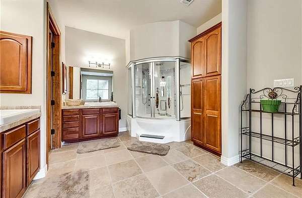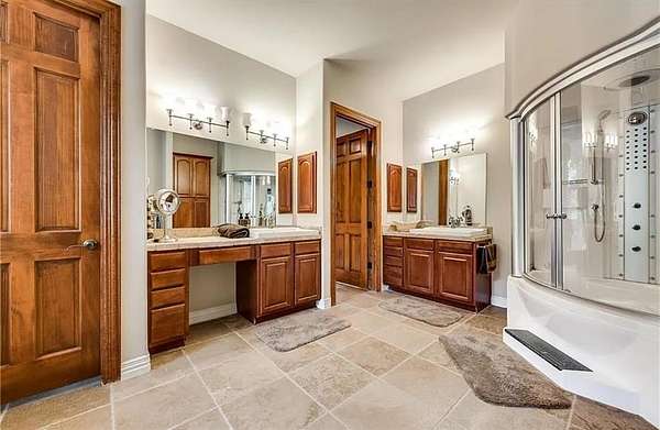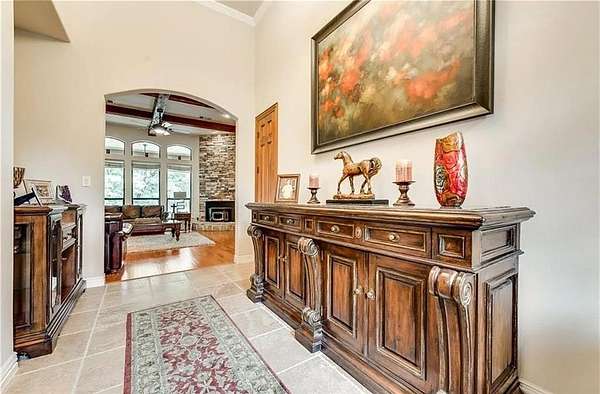 Welcome home to your very own European Tudor style estate, where classic charm meets modern comfort in the highly prestigious Oak Shores lakeside community.Situated on nearly 2 acres, this custom-built residence offers the ideal blend of luxury, functionality & tranquility--all just moments from city conveniences.You will be captivated by the graceful architecture, mature landscaping & park-like setting that surrounds this one-of-a-kind property. The backyard feels like your own private state park--an enchanting retreat framed by majestic trees & lush greenery that create a peaceful, secluded haven you'll never want to leave. Boasting 5 bed, 3 bath & a 3-car garage, this thoughtfully designed floor plan is filled with elegant details & quality finishes throughout. Solid 8-foot solid wooden doors, hardwood floors, plantation shutters &cedar wood beams in the liv rm exude warmth and character at every turn.The gazebo-style ceiling in the breakfast rm the& abundance of natural light add a welcoming touch of charm and refinement. The gourmet kitchen that will delight any culinary enthusiast. Outfitted with top-of-the-line Viking appliances, granite countertops,large island,2 oversized sinks,custom cabinetry & a built-in wine cooler,butler pantry, this space is perfect for both everyday living and entertaining guests.The primary suite is a true sanctuary, featuring a cozy fireplace, tranquil views of the pool & towering trees & a luxurious ensuite bath with a steam jacuzzi--the perfect retreat after a long day. Step outside to your private backyard oasis, where a custom 25K gallon heated saltwater pool with a stunning Oklahoma rock waterfall takes center stage.Additional electrical connections are located by the pool. A cement slab with water and electric connections offers endless possibilities. Additional features include triple insulation,water well,wrought iron fencing,entire house has an intercom system and stereo & much more!Don't miss out on this fabulous property!