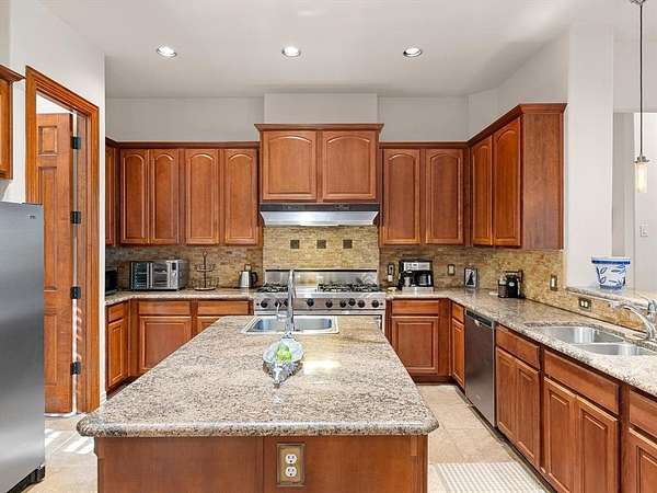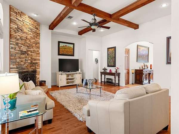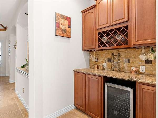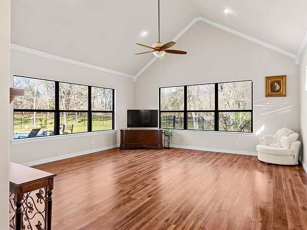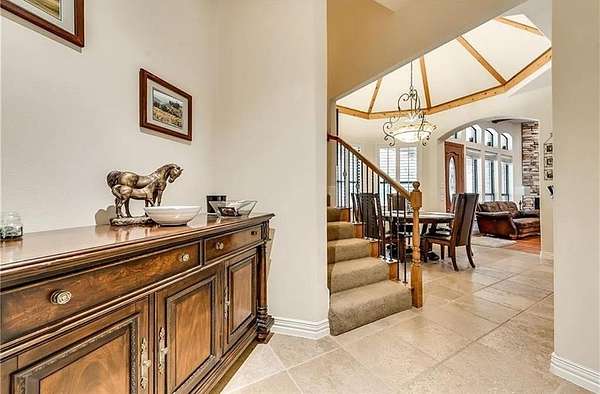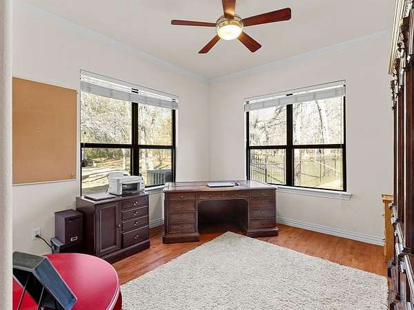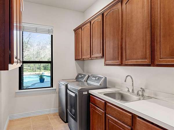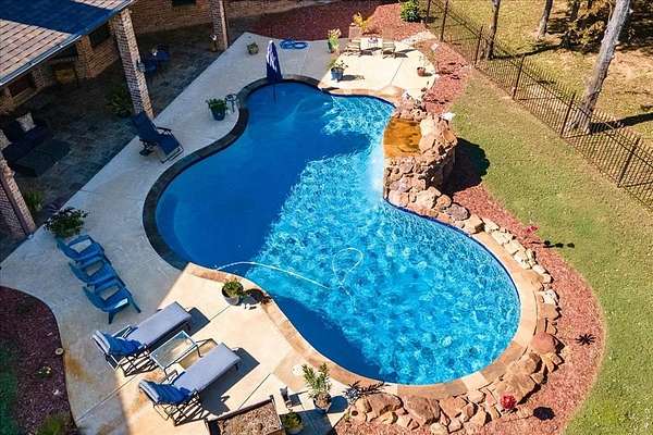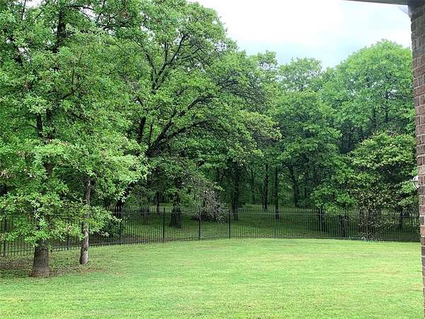 PRICED $70K BELOW CERTIFIED APPRAISED VALUE, NO CITY TAX,MUD! + 2% concession with preferred lender! Escape to your own private resort on nearly 2 acres in the Oak Shores lakeside community, where towering trees, resort-style pool, and timeless architecture create a setting that feels worlds away from the city, yet minutes from everyday conveniences.This thoughtfully designed home features 5 bedrooms, 3 bathrooms, and a 3-car garage. Interior highlights include solid wood doors imported from Boston, hardwood floors, plantation shutters, cedar beams in the living room, custom lighting, and a stunning gazebo-style ceiling in the breakfast area.The gourmet kitchen is designed for both everyday living and entertaining, Viking appliances, quartz countertops, a large island, dual oversized sinks, custom cabinetry, built-in wine refrigerator, and a butler’s pantry. The primary suite offers a cozy fireplace, serene views of the pool and surrounding trees, and a luxurious bath featuring a steam Jacuzzi. Flooring throughout the home includes travertine marble, slate tile, and hardwoods, adding warmth and character. Step outside to your private backyard oasis, complete with a 25,000-gallon heated saltwater pool with a dramatic Oklahoma rock waterfall, creating a resort-style retreat. Additional electrical connections near the pool and a concrete slab with water and electric hookups allow for future outdoor structures. Additional features include an imported Italian fountain at the front entrance, triple insulation, private water well, wrought iron fencing, whole-home intercom and stereo system, new HVAC installed 2 years ago, two hot water heaters, and recently repainted interior and exterior. Close proximity to the tollway and I35. Minutes away from the highly anticipated new high school to be completed in 2026-2027. A rare opportunity to own a truly special property where privacy, nature, and timeless design come together.