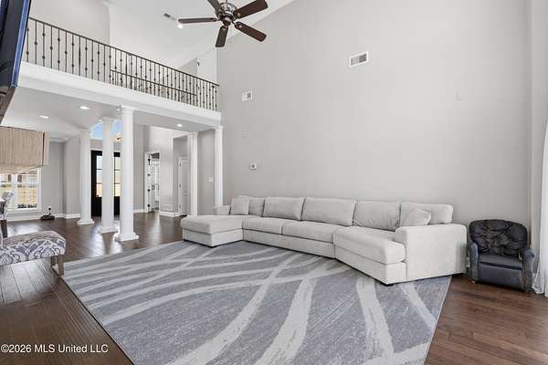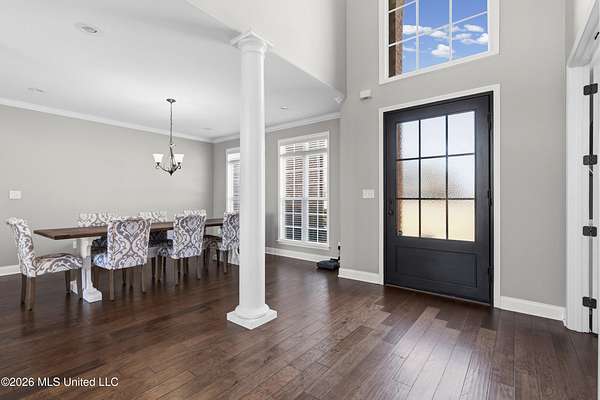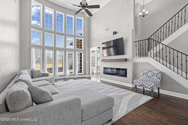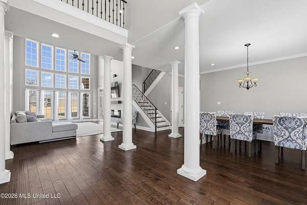 Experience a rare blend of luxury, privacy, and convenience at this exceptional 4-bedroom, 3.5-bath estate located on the taxiway in Hernando's unique Airpark community. Perfectly positioned on 1.53 beautifully landscaped acres, this remarkable property offers the charm of peaceful, country-style living with no HOA and the convenience of being just minutes from downtown Hernando Square, where shopping, dining, and family activities are always close at hand. From the moment you enter, the home makes a stunning impression with a grand foyer framed by elegant pillars, a dramatic double staircase accessible from both the living room and kitchen, and a striking upstairs bridge overlooking the entry. Floor-to-ceiling windows in the living room create a breathtaking focal point while filling the home with natural light. Beautifully remodeled downstairs living spaces and bathrooms add refined updates to this already impressive residence. The spacious primary suite is a private retreat featuring beautiful bay windows, a sitting area, double closets, and a luxurious en-suite bath complete with heated floors and an upgraded shower. Designed with both comfort and entertaining in mind, the kitchen offers a large pantry, island with induction cooktop, breakfast nook, formal dining room, and a sunroom just off the kitchen that provides an inviting space for gatherings and special occasions. A private office with an attached butler's pantry includes a small sink, refrigerator, and counter space, creating the perfect coffee station or serving area. Upstairs, you'll find 3 additional bedrooms and 2 full baths, including a Jack-and-Jill layout, along with 2 large walk-in attics that provide exceptional storage. Outside, the estate continues to impress with a 3-car garage, paved driveway, expansive yard, and outdoor lighting that enhance the property's curb appeal and livability. A standout feature is the impressive 50x50 shop, complete with two AC units and a half bath, and engineered to accept an aircraft hangar door for those who appreciate the unique lifestyle this community offers. The roof is only 2 years old, offering valuable peace of mind for the next owner. Zoned for Hernando schools, including Oak Grove Elementary, this property offers a truly uncommon opportunity to enjoy luxury living in a one-of-a-kind aviation community while remaining incredibly close to the heart of Hernando. This is more than a home - it is a lifestyle. It is the kind of place where everyday life feels a little more special, where there is room to breathe, room to gather, and room to truly feel at home!