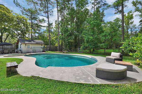Welcome to a property where country charm meets modern luxury. Nestled on almost 4 acres, this fully renovated 3-bedroom, 3-bathroom home, with in-laws suite offers everything an equestrian, homesteader, or hobbyist could wish for. The grounds are a true retreat, featuring a sparkling pool, relaxing hot tub, and a charming pool house-perfect for entertaining, unwinding or an Airbnb. A well-appointed barn boasts 5 stalls, a tack room, and ample covered space for tractors and equipment. For the hobbyist or craftsman, the two-story workshop is a dream come true. The fully fenced property offers abundant space for raised garden beds, making self-sufficiency within easy reach. Towering legacy oak trees invite afternoons on a tire swing or adventures in a treehouse. Whether you envision horses grazing, gardens in full bloom, or weekends spent poolside, this property offers it all. Don't miss the chance to own this rare combination of luxury, acreage, and endless possibility.