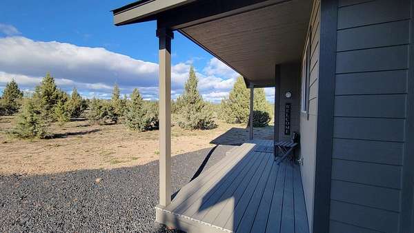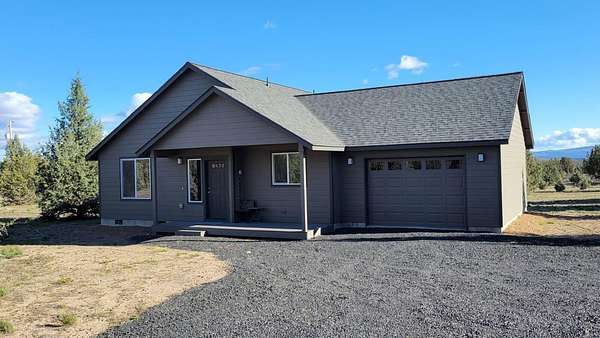 Beautiful property! Built in 2024, this new home sits on a very nice 5.23-acre parcel offering a variety of future uses. Located south of Prineville towards Prineville Reservoir, this home has 2 bed/1 bath. Nice layout in kitchen with a breakfast bar. All doors and drawers in kitchen have soft close hinges and guides. All windows have upgraded simulated wood finish. The attached garage is finished, insulated and painted. The parcel is a nice level lot, entirely fenced with plenty of room to build a shop, outbuildings or a barn for your animals. There are no CC&R's or HOA's in this area. A rural setting yet only 12 minutes from medical services, groceries, restaurants and a variety of other services in Prineville. Property has its own private 30 gallon per minute well, pumphouse and 2 pressure tanks. Very workable sandy loom soil, great for gardening, animals, livestock or additional structures. Maps and information available upon request, schedule your showing today.