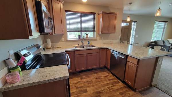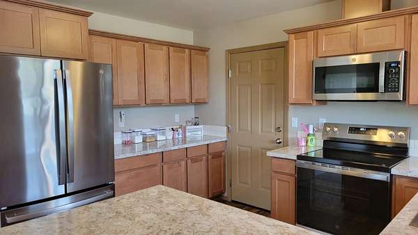 - Breakfast Bar, Double Vanity, Fiberglass Stall Shower, Laminate Counters, Pantry, Primary Downstairs