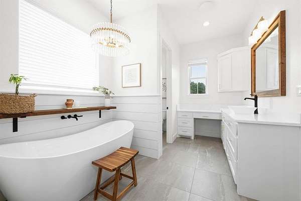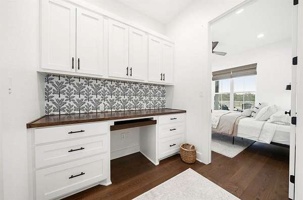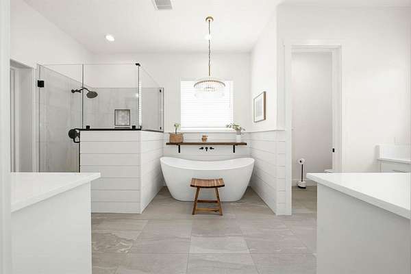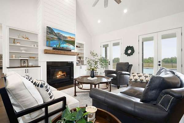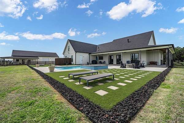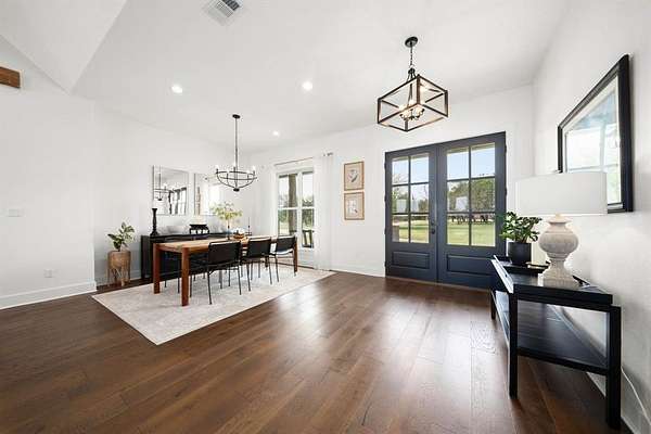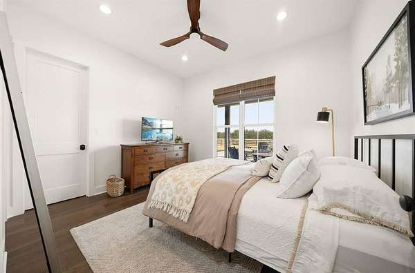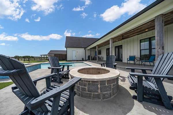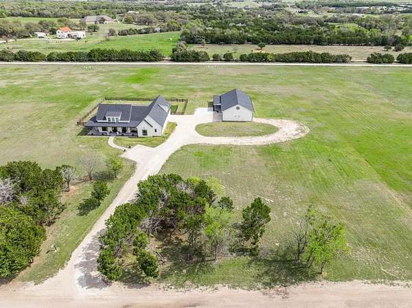 The isolated primary suite offers a spa-like bath with a walk-in shower and soaking tub, along with a walk-in closet that provides convenient direct access to the laundry room. Additional features include a 39×36 shop with drive-through access, three roll-up doors, and extra loft storage. 5.9 Acres with restrictions to allow horses and or livestock. Complete perfection in every way. Enjoy peaceful Texas sunrises and sunsets from the expansive wraparound porch—perfect for relaxing and taking in the scenic countryside.