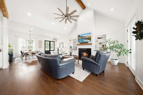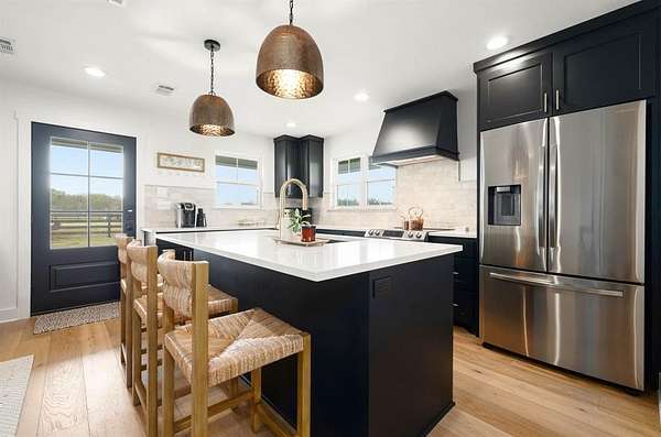 Exemplary design and craftsmanship by a custom home builder. This stunning home welcomes you with 8-foot mahogany doors, black double-pane windows, and antique hand-hewn posts and beams. The open-concept layout is filled with natural light from walls of glass, offering picturesque views of the surrounding property. The main home features 4 spacious bedrooms and 3.5 baths, along with a beautiful and elaborate 1 bed 1 bath guest house. The fourth bedroom is en suite and the only room on the second floor. This room could also serve as a flexible space for an office, game room, or second living area.The chef’s kitchen boasts a large island, a walk-in pantry with natural light, an upscale baker’s station, and high-end appliances including a five-burner gas cooktop. The kitchen sink is perfectly positioned to overlook the beautiful pool and surrounding acreage.
